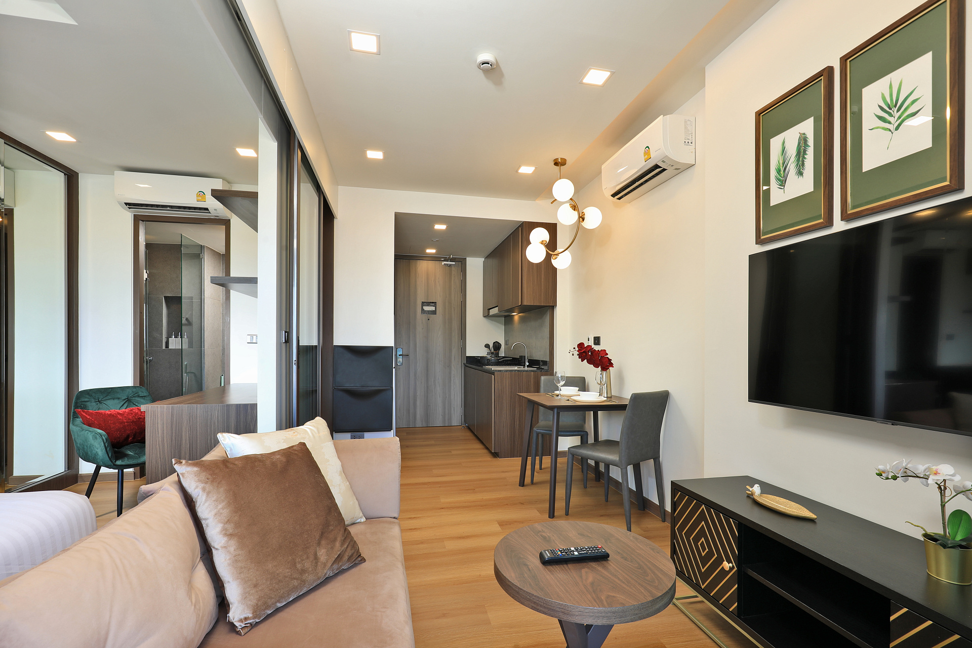 Уютная квартира площадью 35 м² с гостиной зоной, полностью оборудованной кухней, спальней с двуспальной кроватью и балконом. В апартаментах доступны бесплатный Wi-Fi, кондиционер и парковка. Рядом находятся рестораны, магазины и все необходимое для комфортного отдыха или удалённой работы.