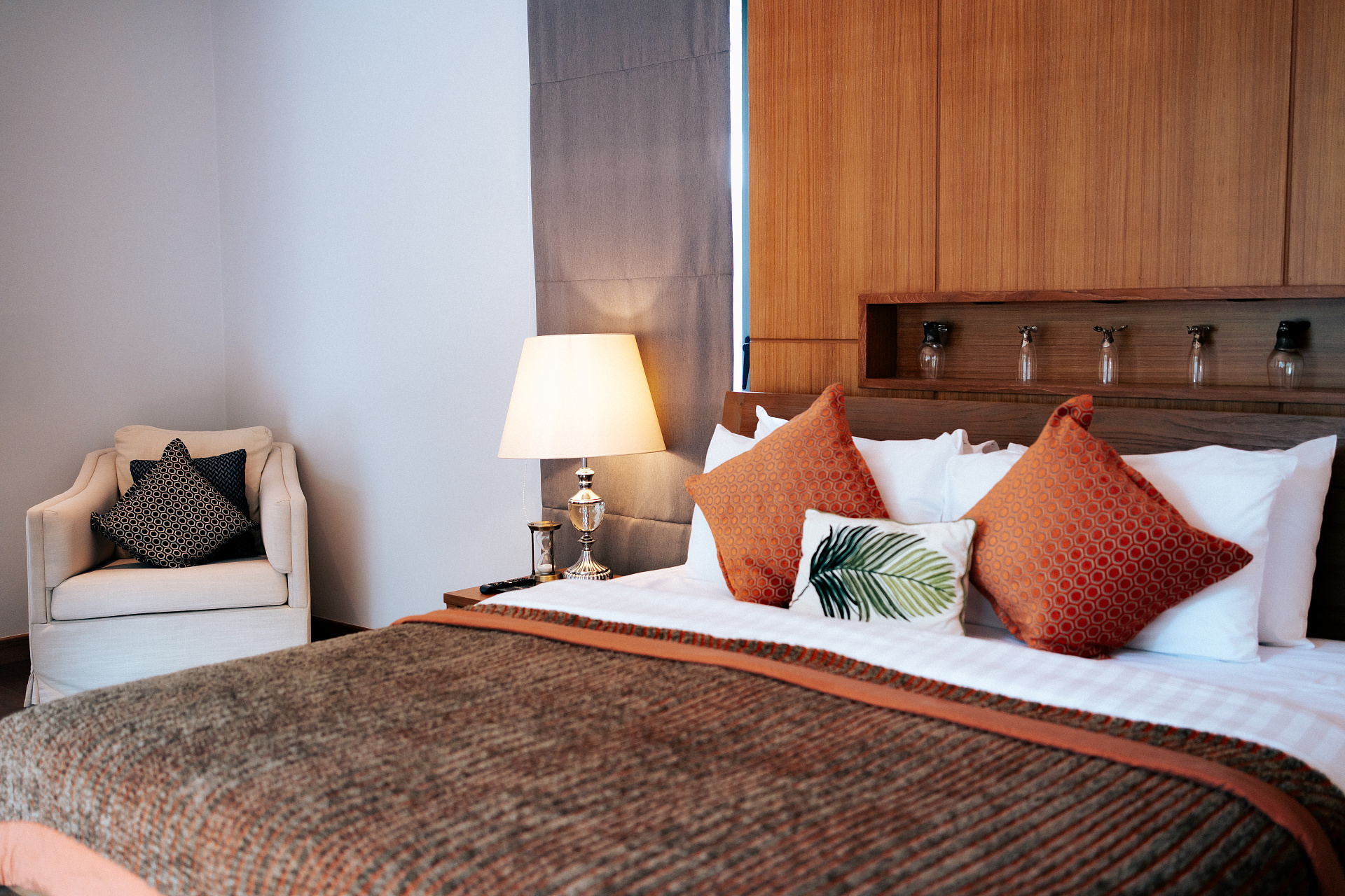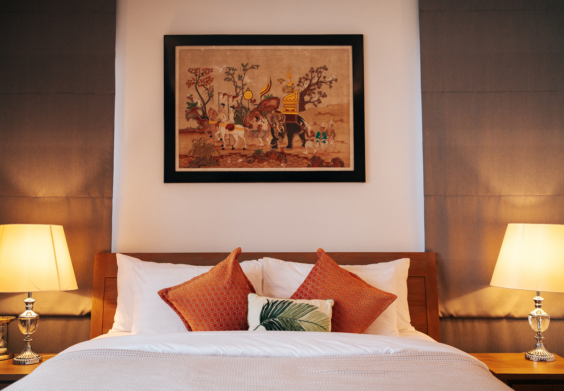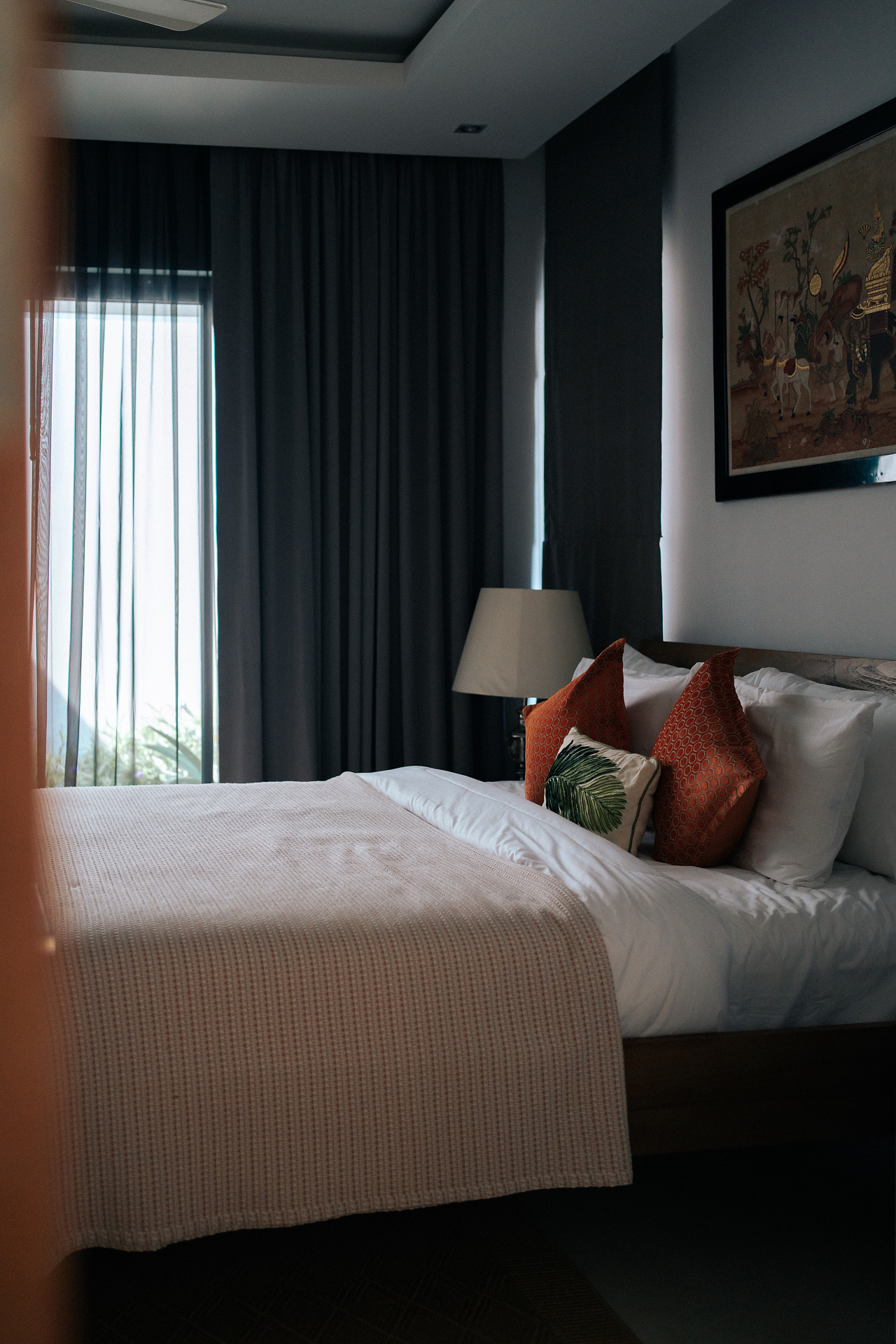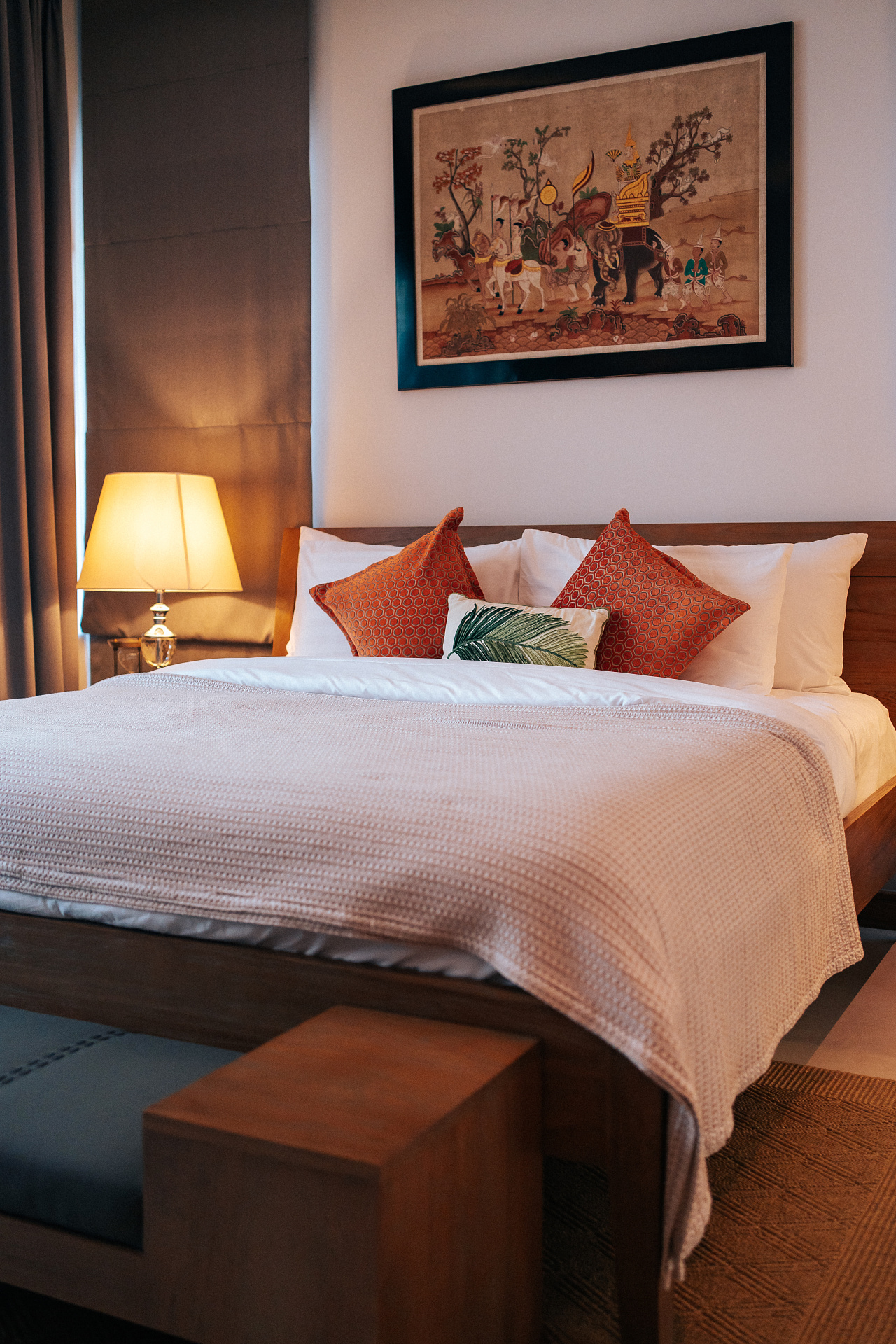 Вторая спальня оформлена в теплых тонах с азиатскими акцентами в декоре, подарит атмосферу спокойствия, где приятно завершать день и погружаться в сон.