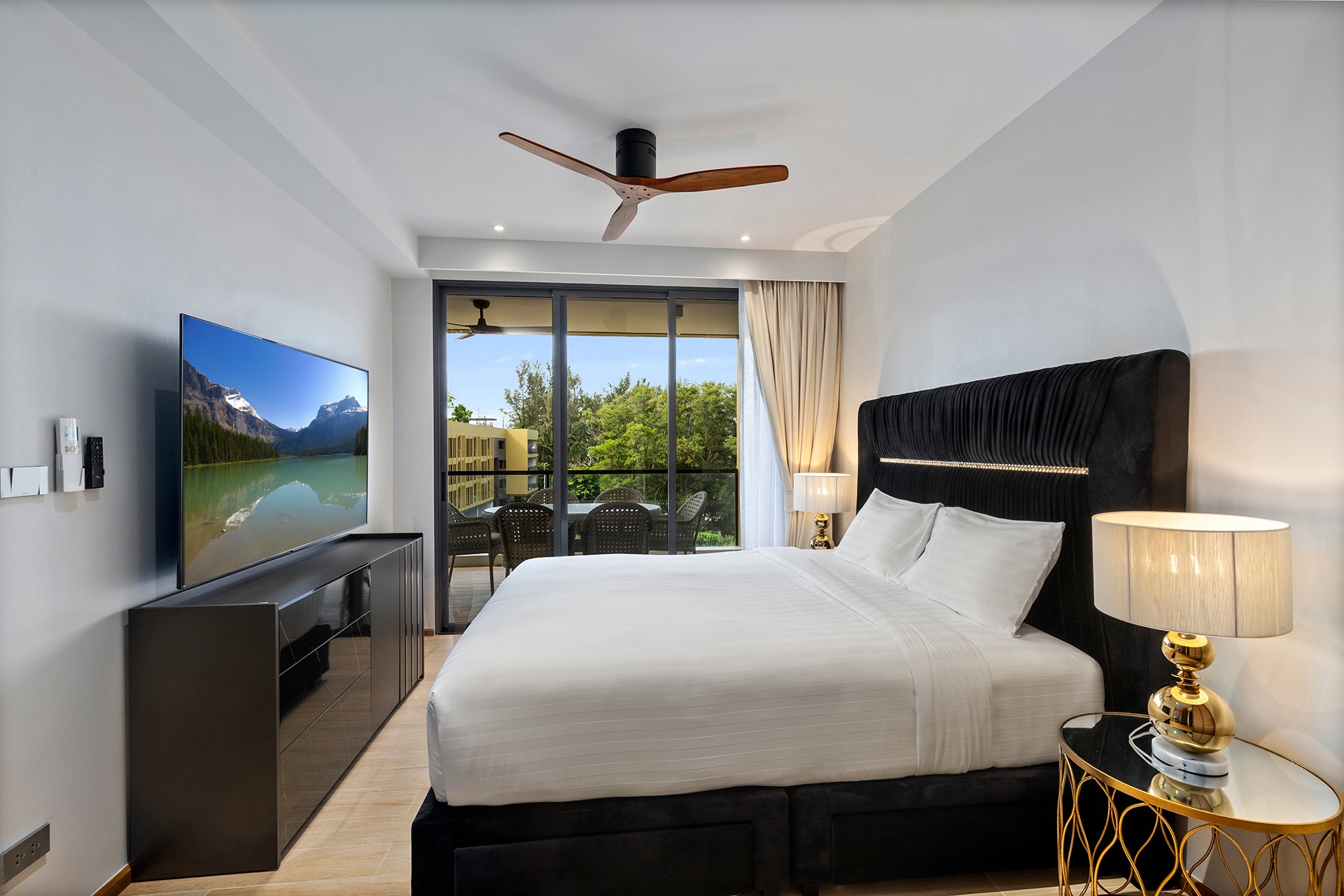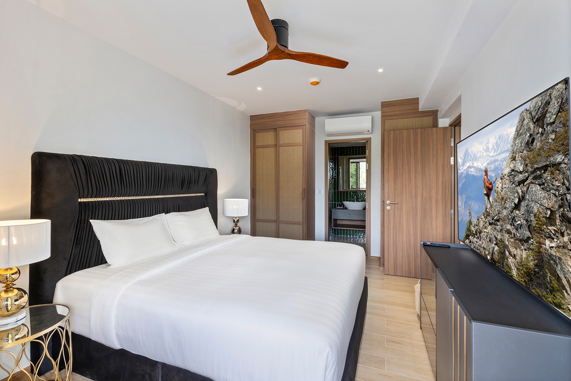 Главная спальня со своим санузлом и с тв. Выход на террасу.