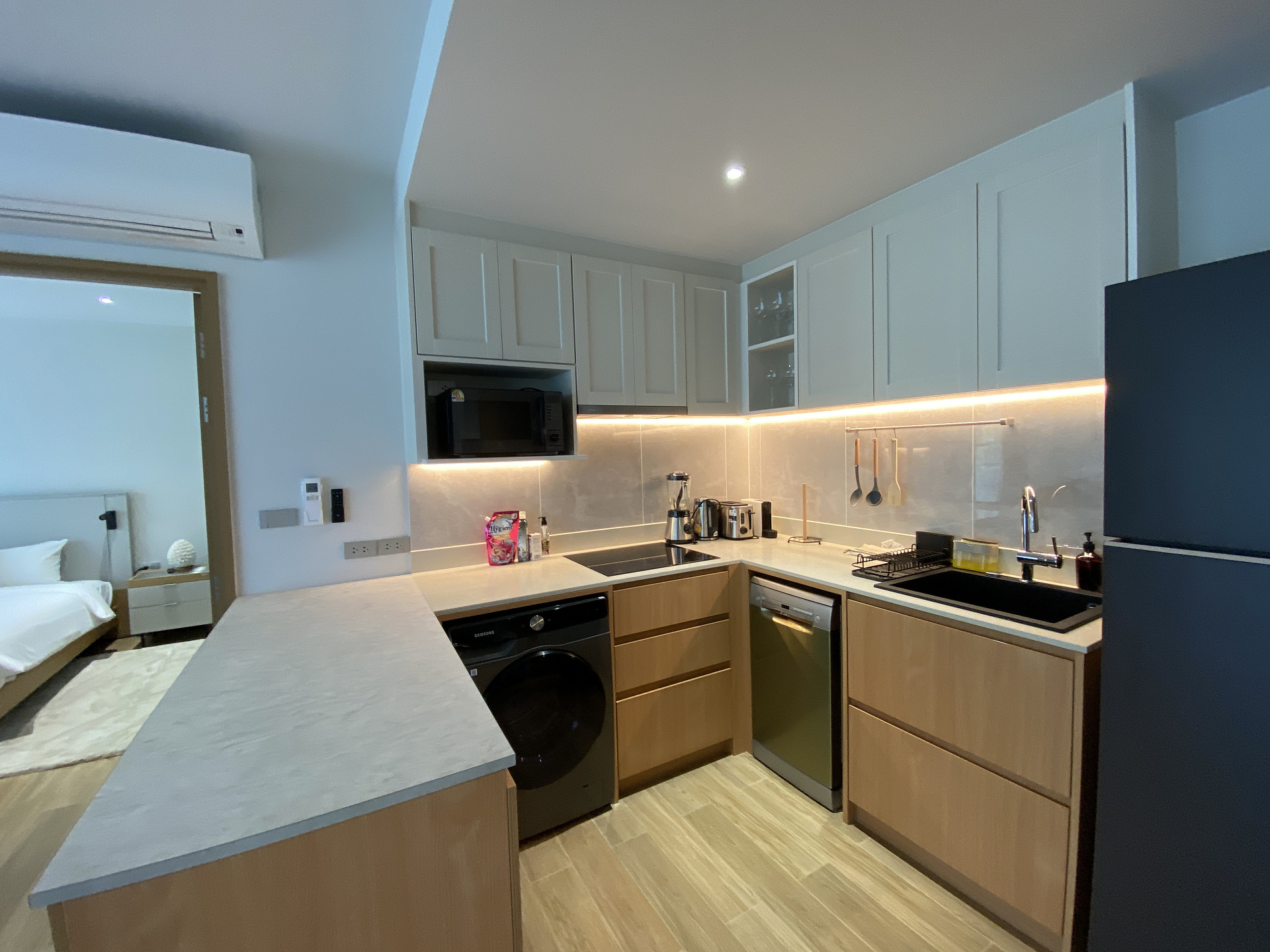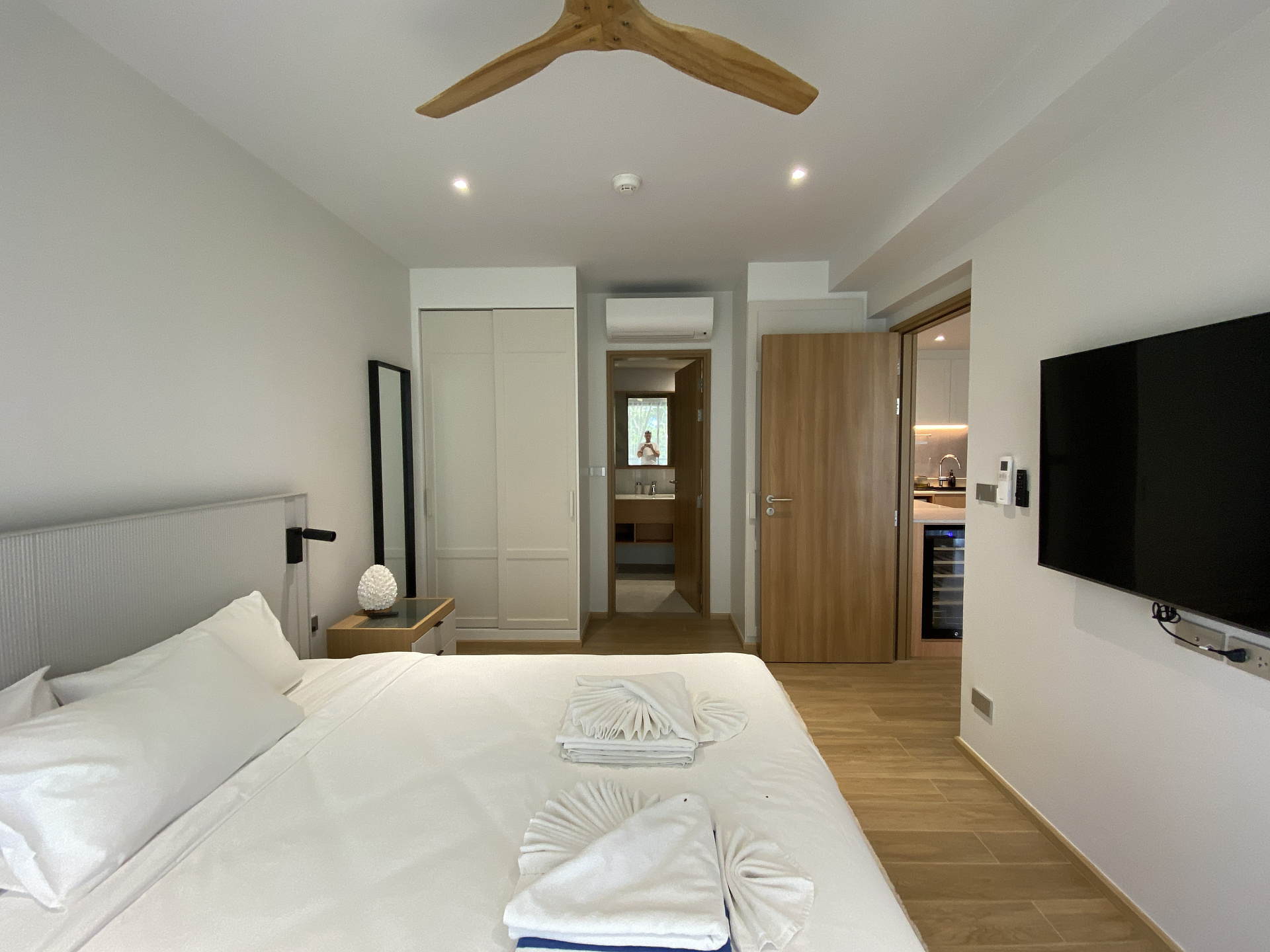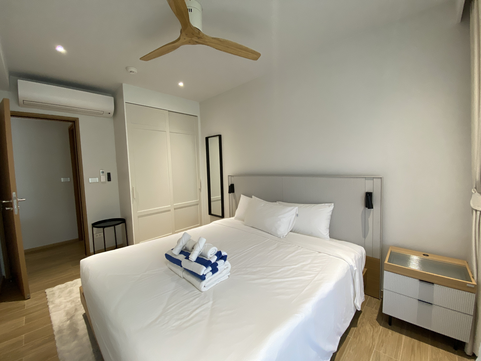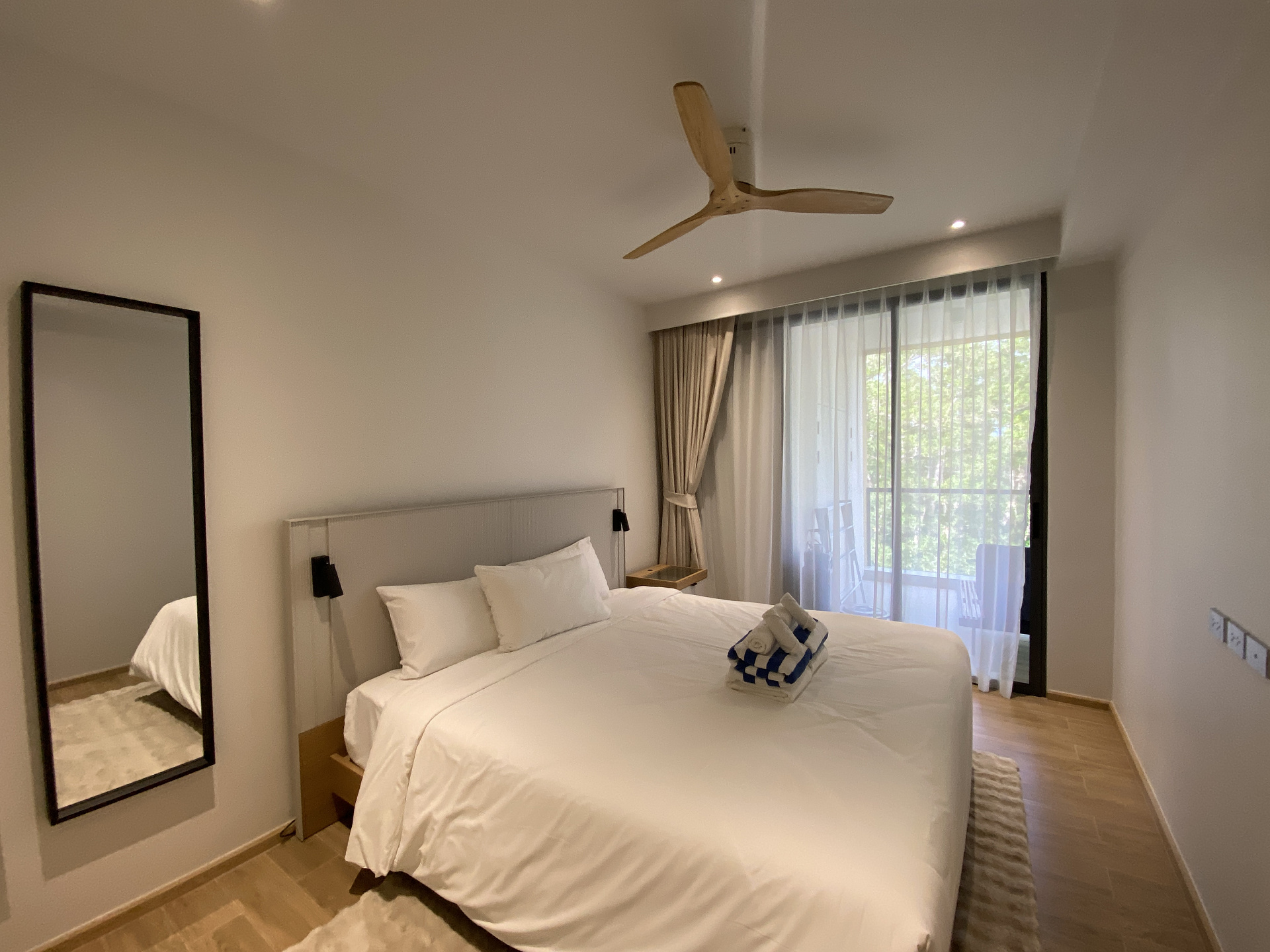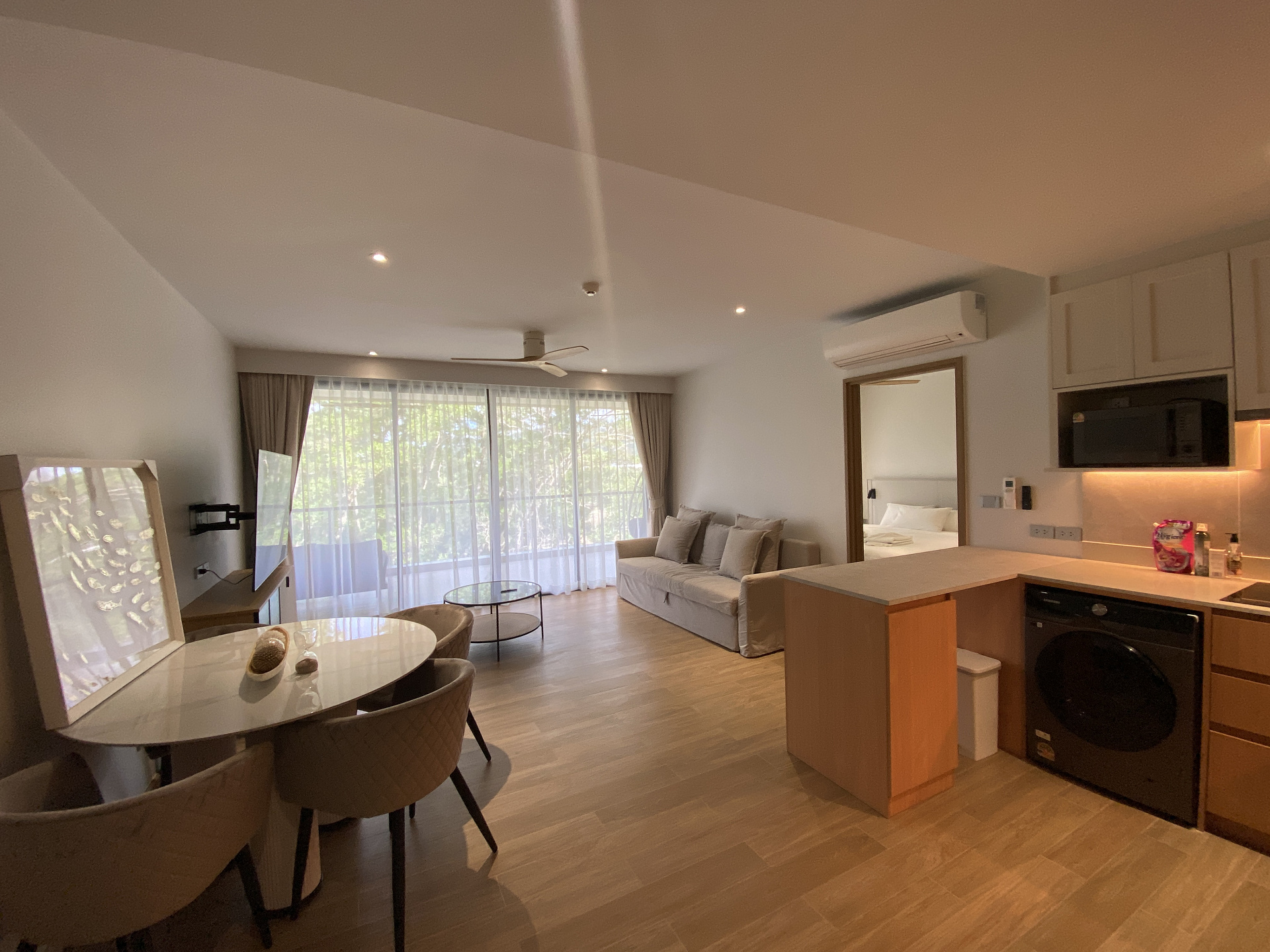 Современные и стильные апартаменты с двумя спальнями в комплексе Beachside Laguna возле пляжа Бангтао идеально подойдут для комфортного отдыха. Просторная гостиная с кухней и зоной отдыха, две уютные спальни, оборудованные ванные комнаты и великолепный панорамный балкон с креслом-качелями и диваном, окружённый зеленью и видом на горы. Идеально для спокойного отдыха и наслаждения природой Пхукета.