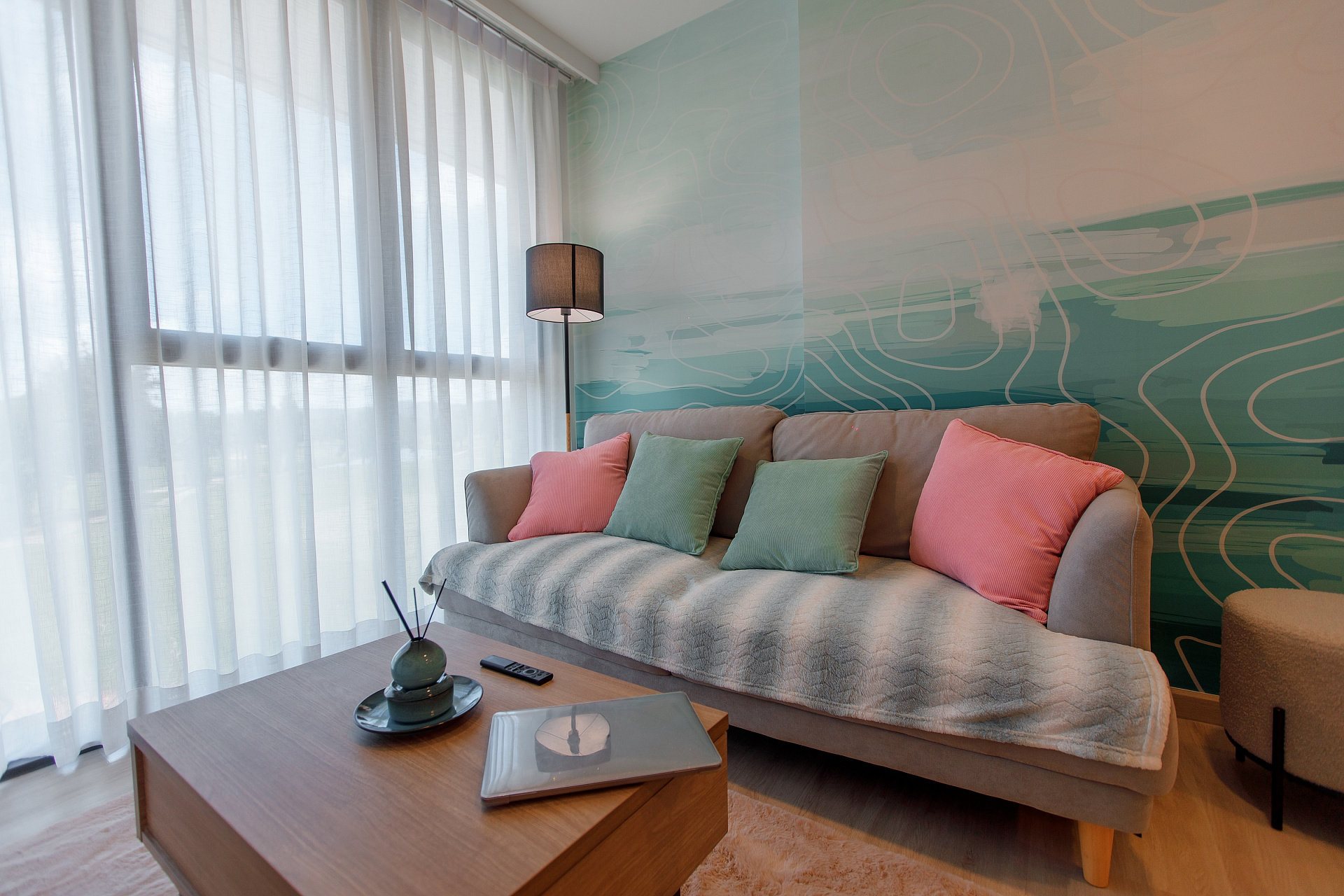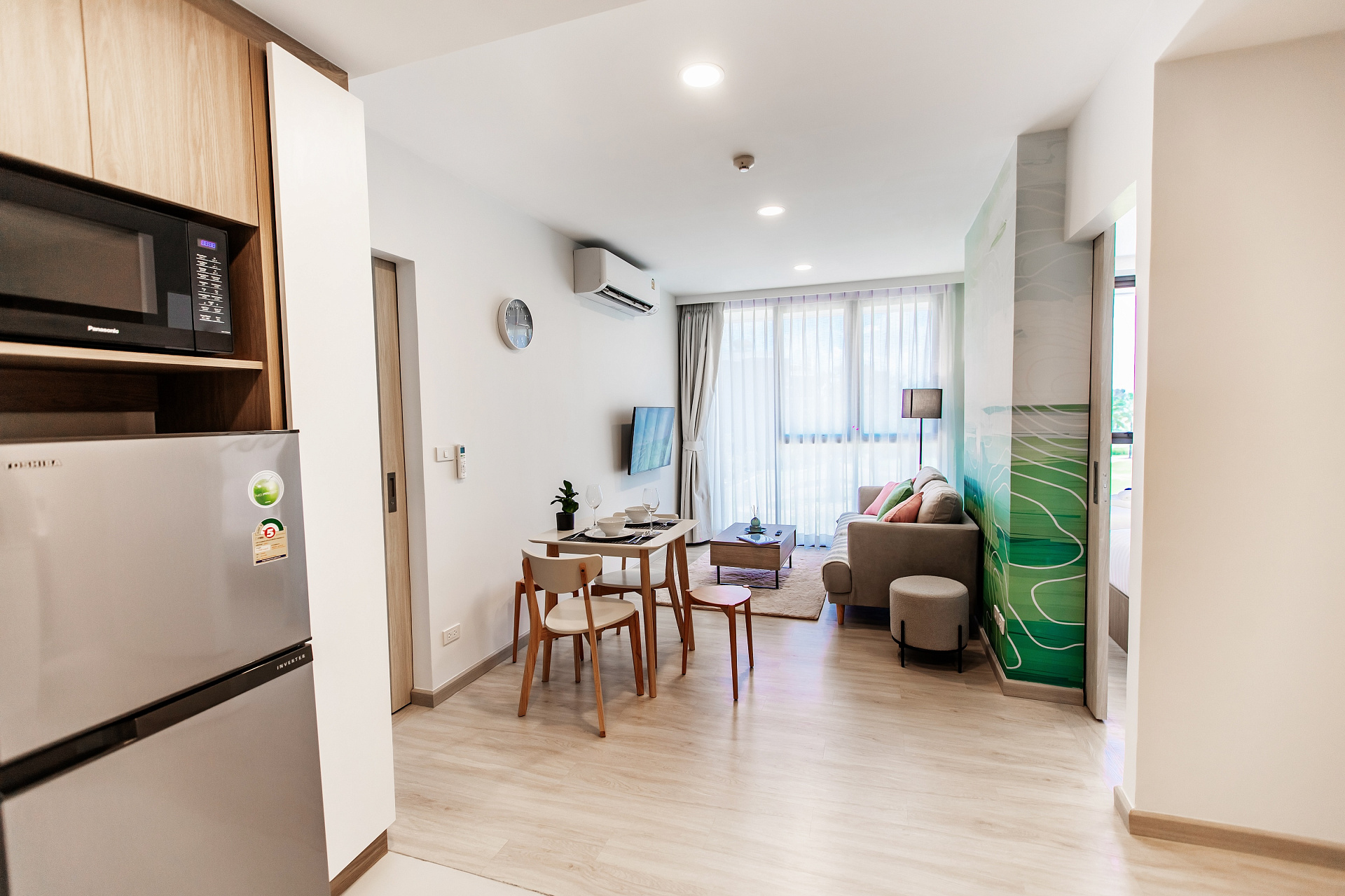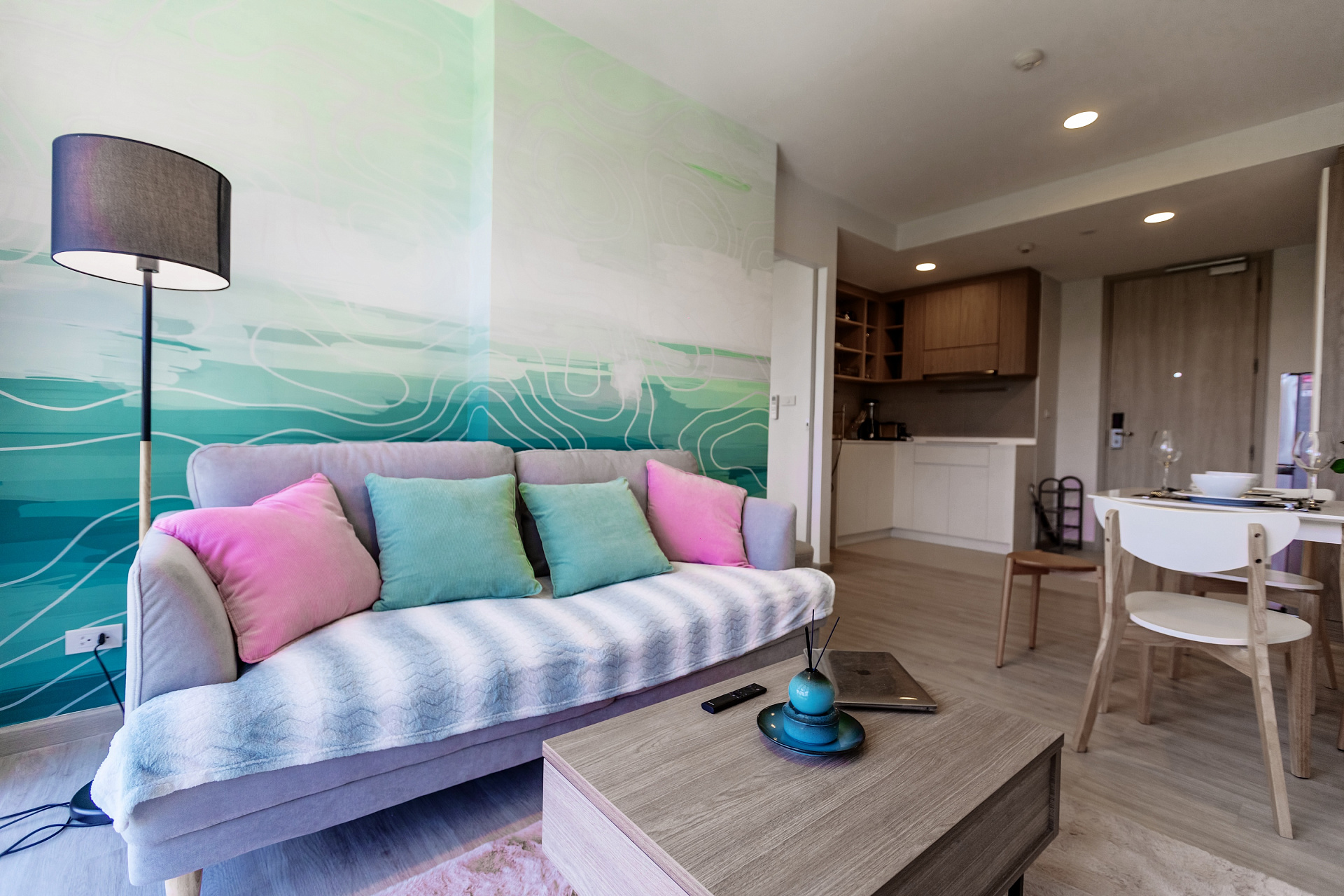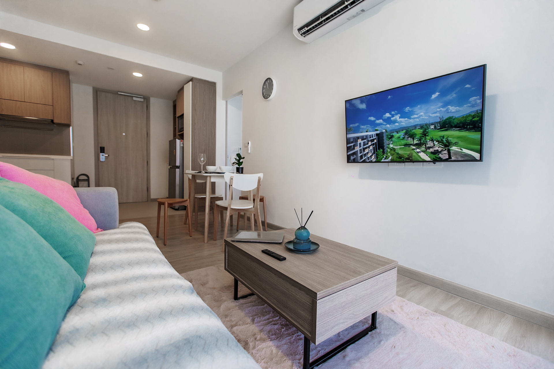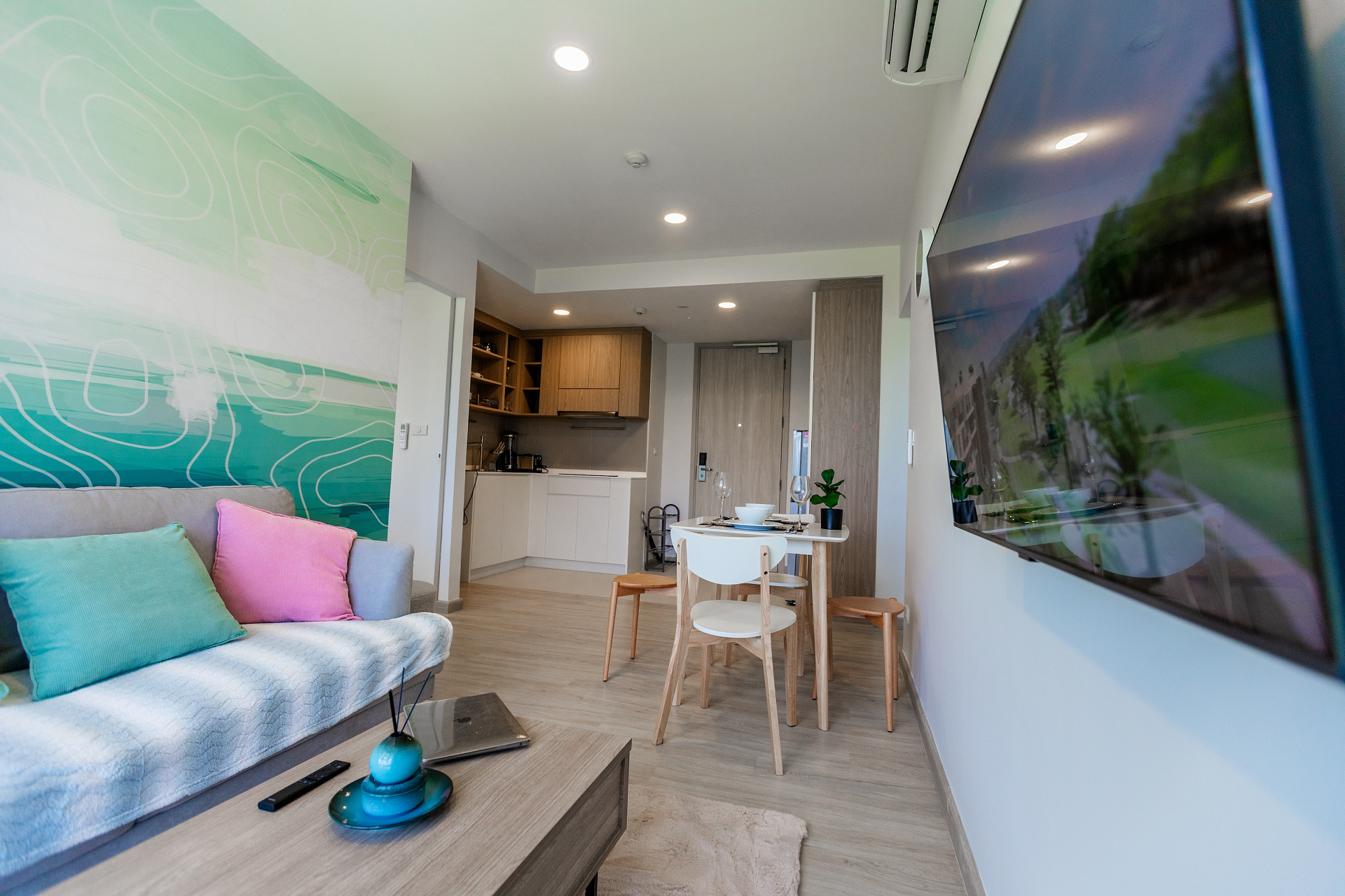 Небольшая квартира c двумя спальнями и гостиной в центре самого роскошного курортного города Лагуна и в пешей доступности к пляжу и всей инфрастуктуре курорта: кафе, рестораны, йога, магазины.