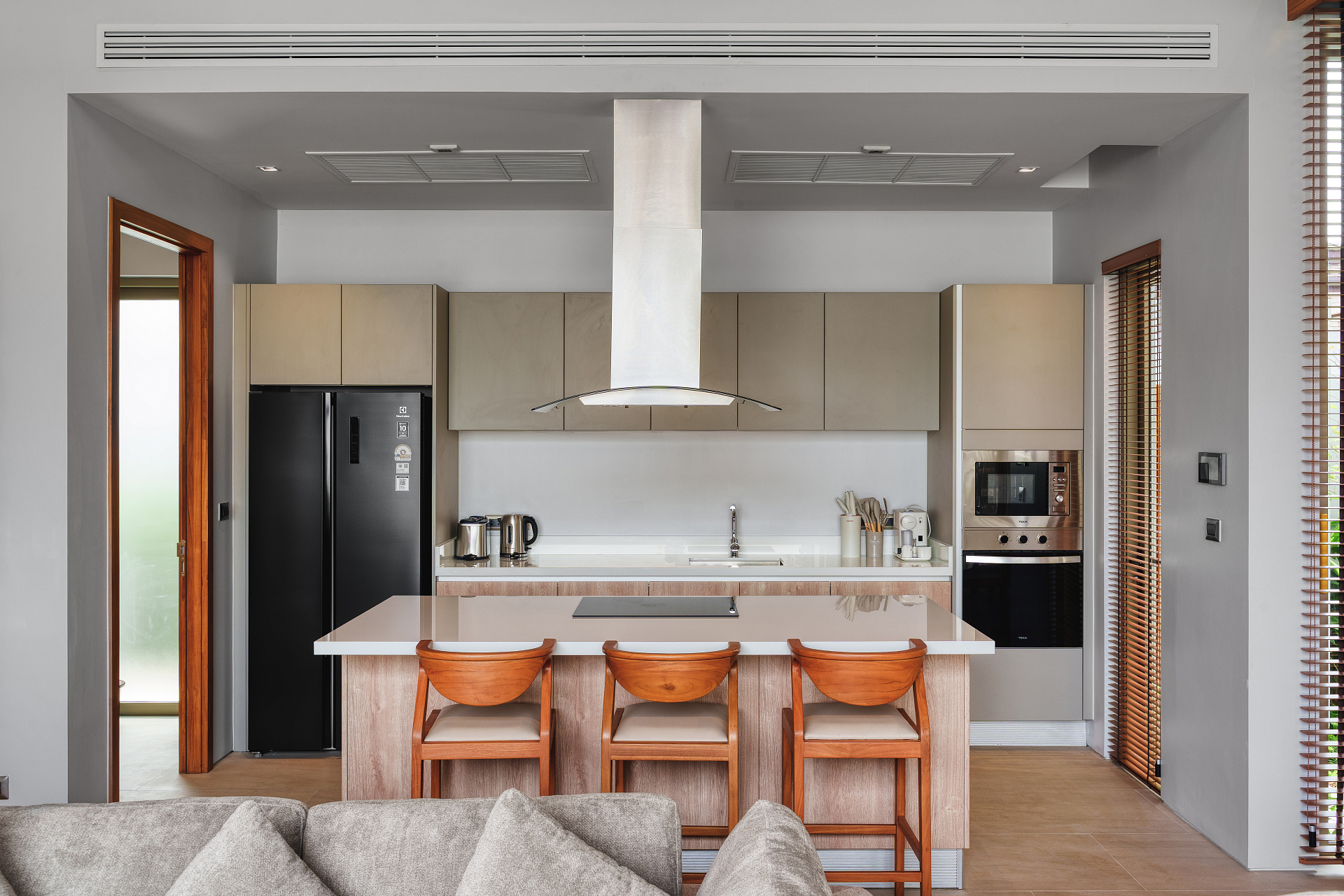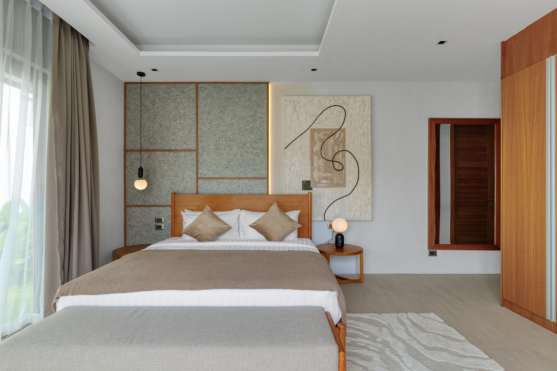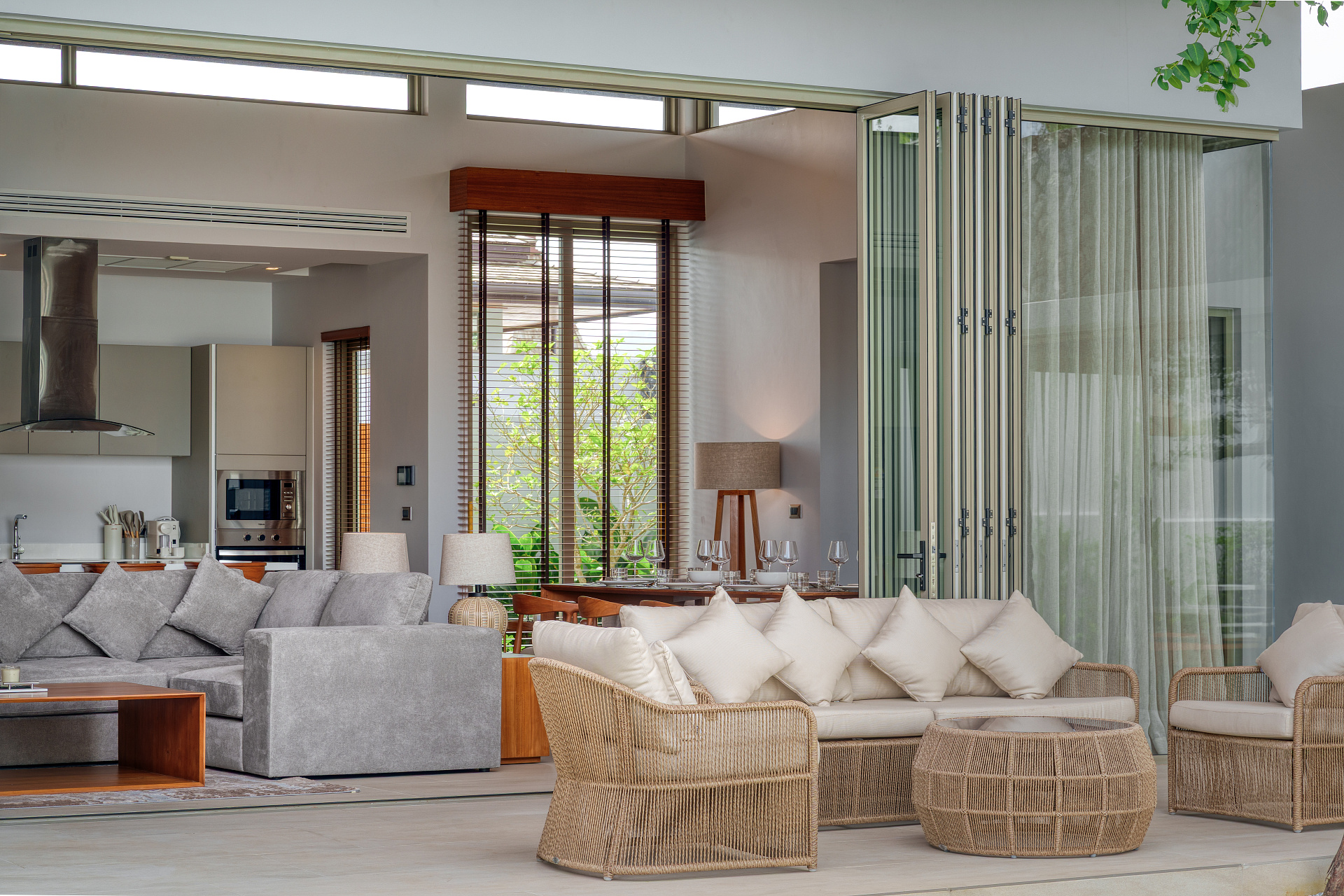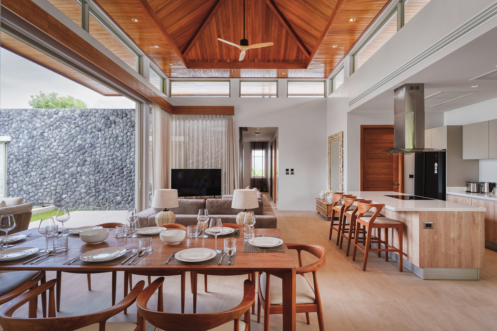 Вся вилла оборудована стеклянными окнами и дверьми от пола до потолка. Гостиная соединена с обеденной зоной и имеет выход на террасу к бассейну, где также есть зона для барбекю. Все 4 просторные спальни с кроватями размера king-size и собственными ванными комнатами. Кухня оборудована всей необходимой техникой.