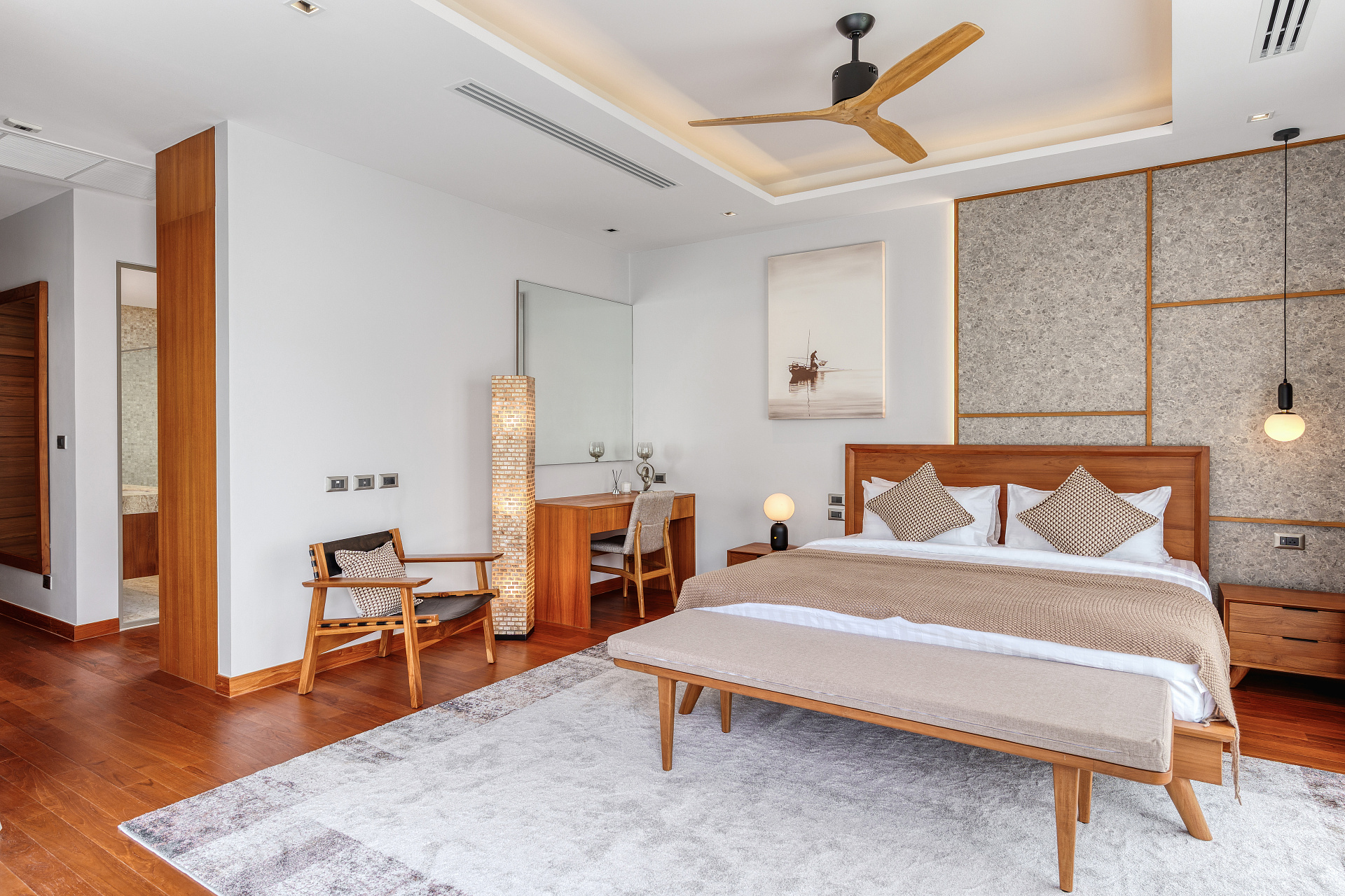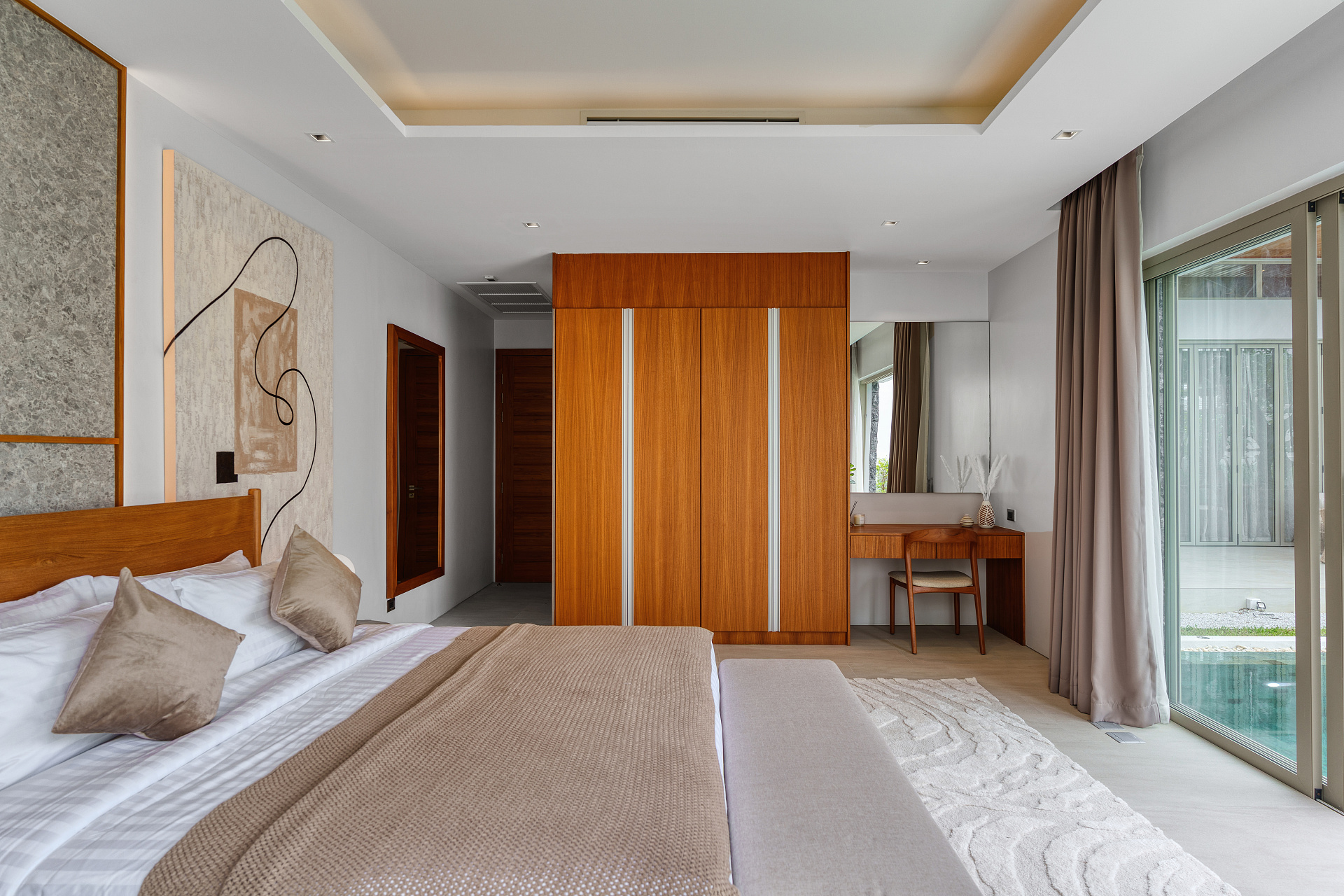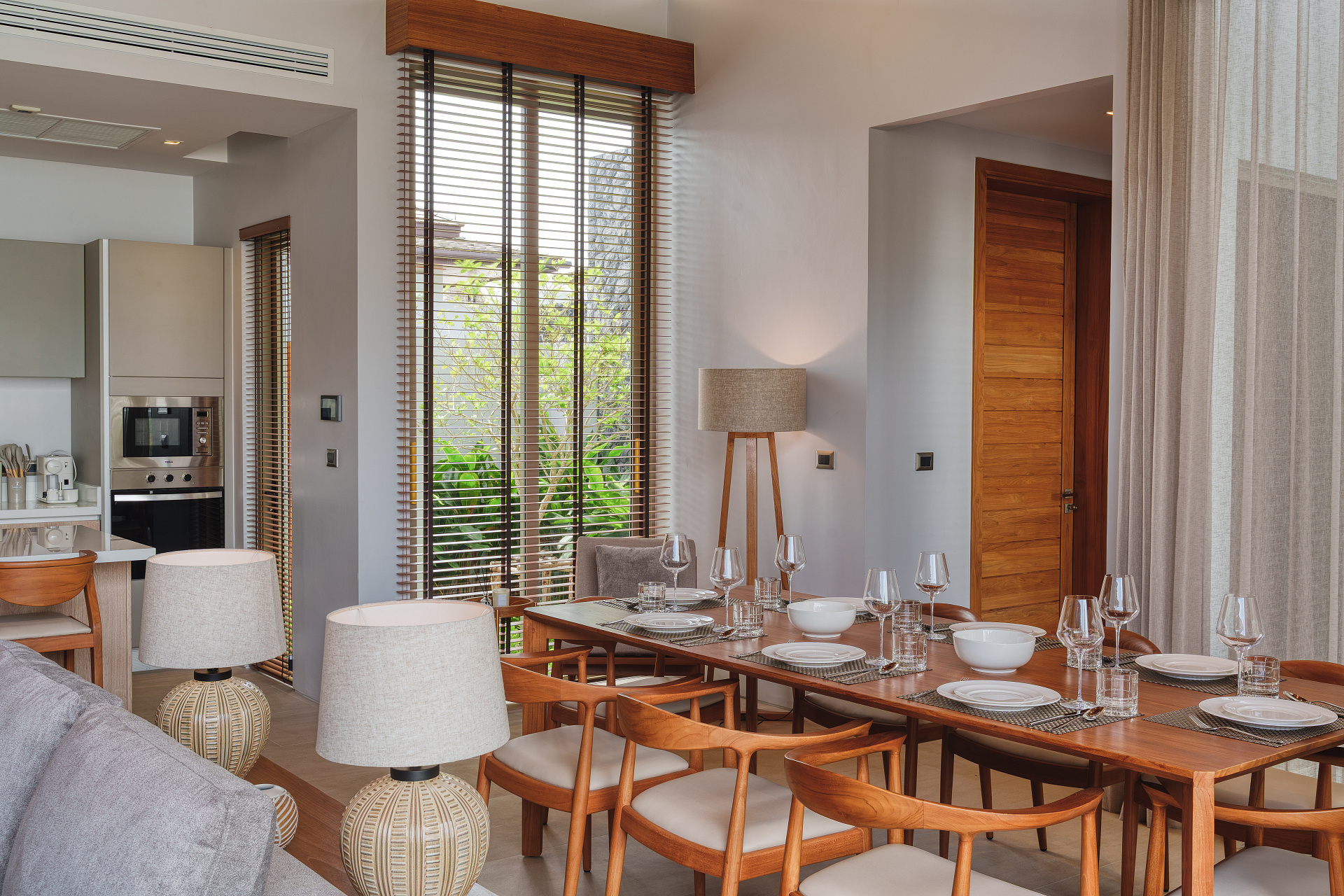 Вся вилла оборудована стеклянными окнами и дверьми от пола до потолка. Гостиная соединена с обеденной зоной и имеет выход на террасу к бассейну, где также есть зона для барбекю. Все 4 просторные спальни с кроватями размера king-size и собственными ванными комнатами. Кухня оборудована всей необходимой техникой.