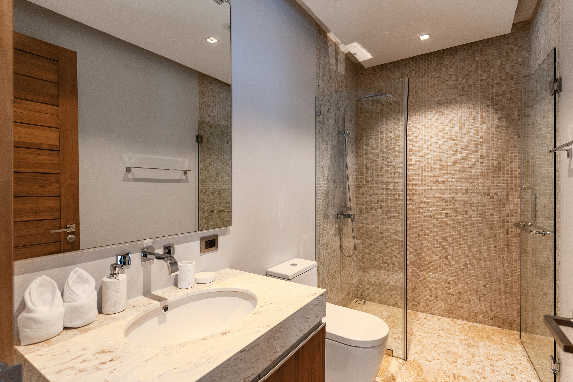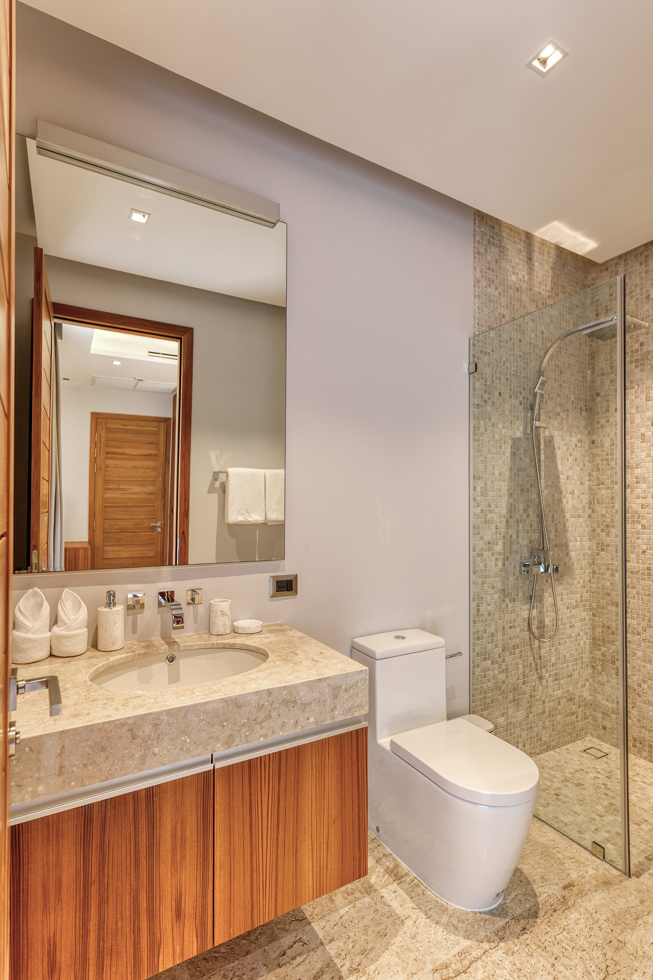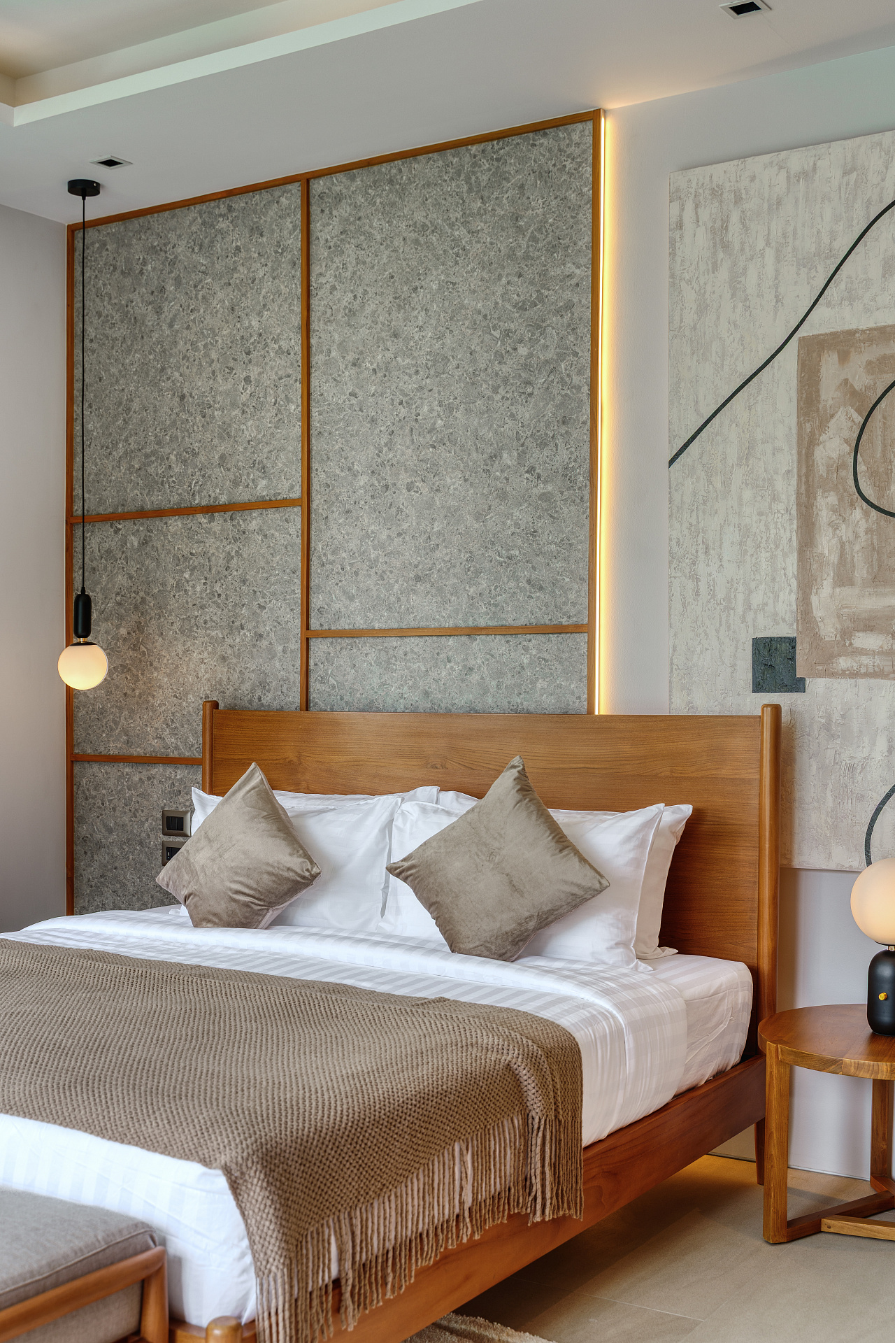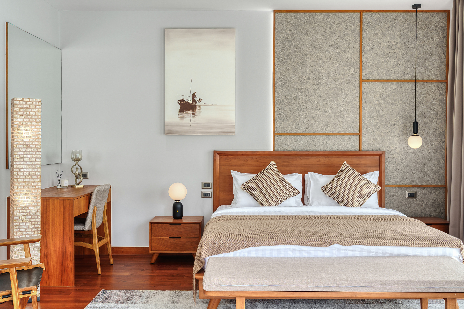 Вся вилла оборудована стеклянными окнами и дверьми от пола до потолка. Гостиная соединена с обеденной зоной и имеет выход на террасу к бассейну, где также есть зона для барбекю. Все 4 просторные спальни с кроватями размера king-size и собственными ванными комнатами. Кухня оборудована всей необходимой техникой.