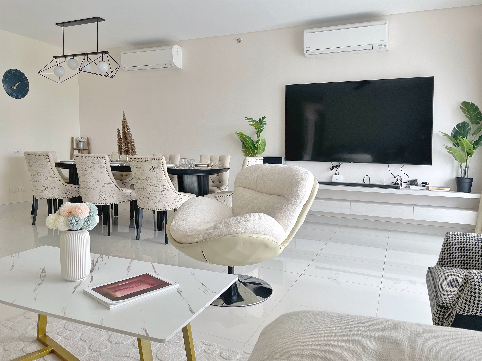 • 2 балкона с креслами из ротанга и столиком, где можно насладиться чашкой утреннего кофе с видом на озера, море и горы (на один выход из мастер-спальни, на другой из гостиной)