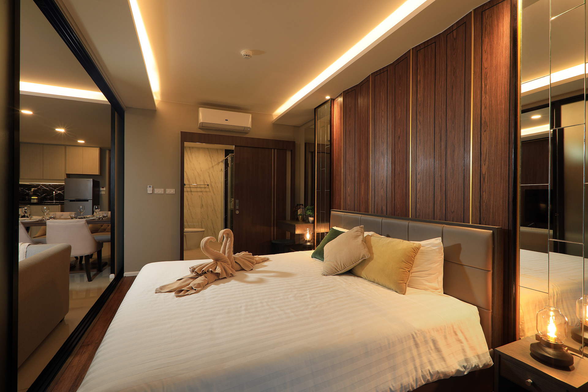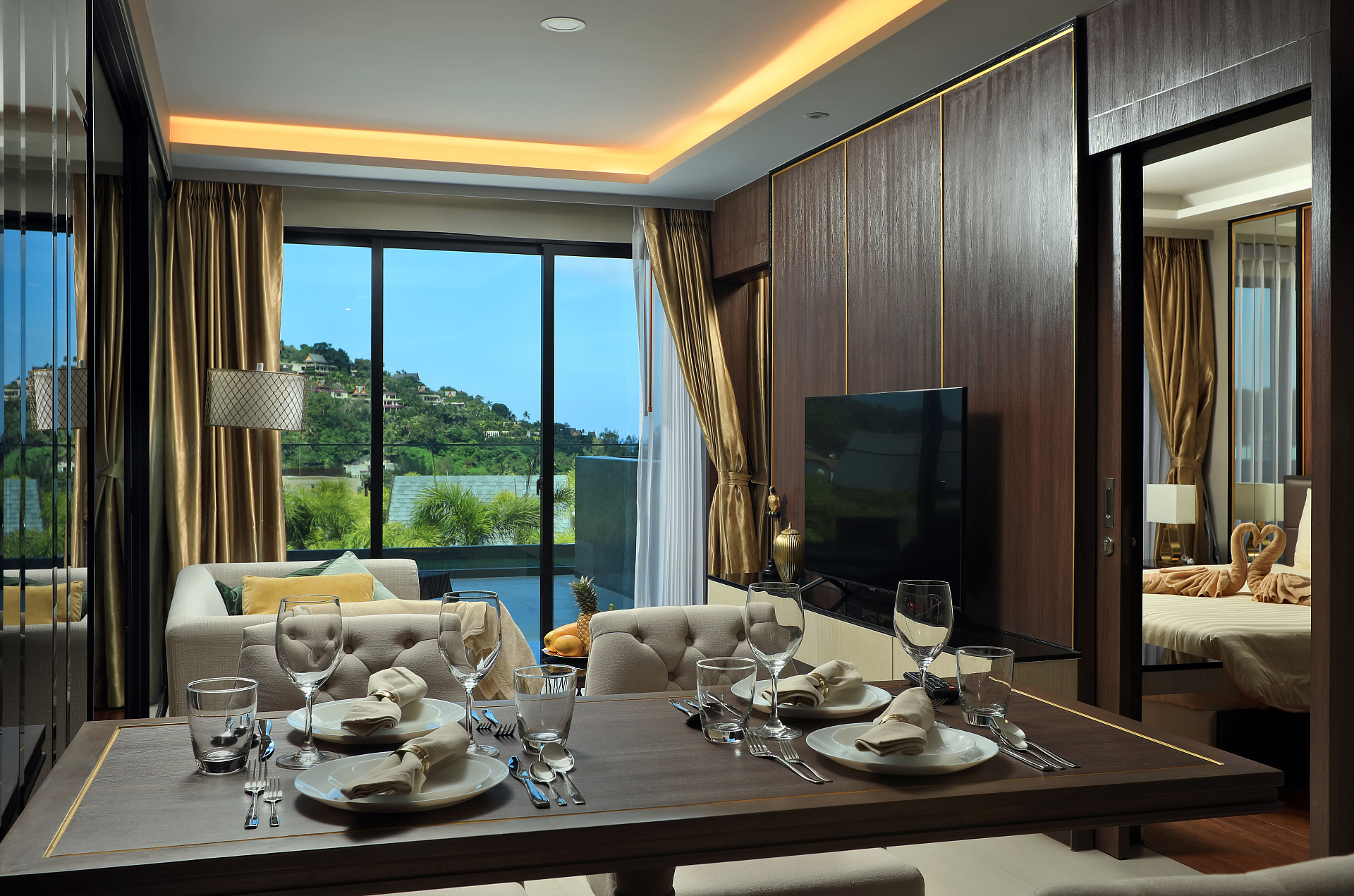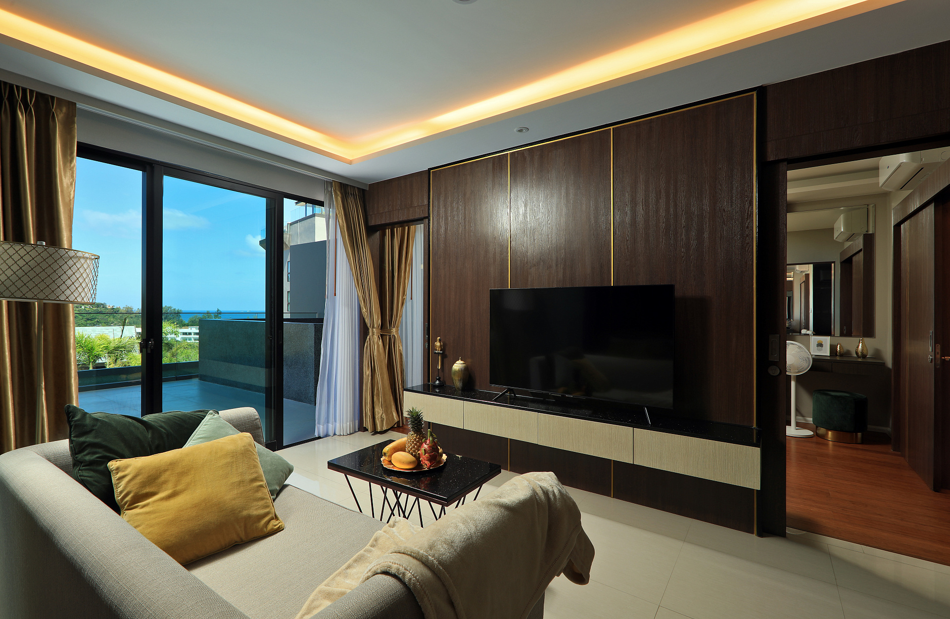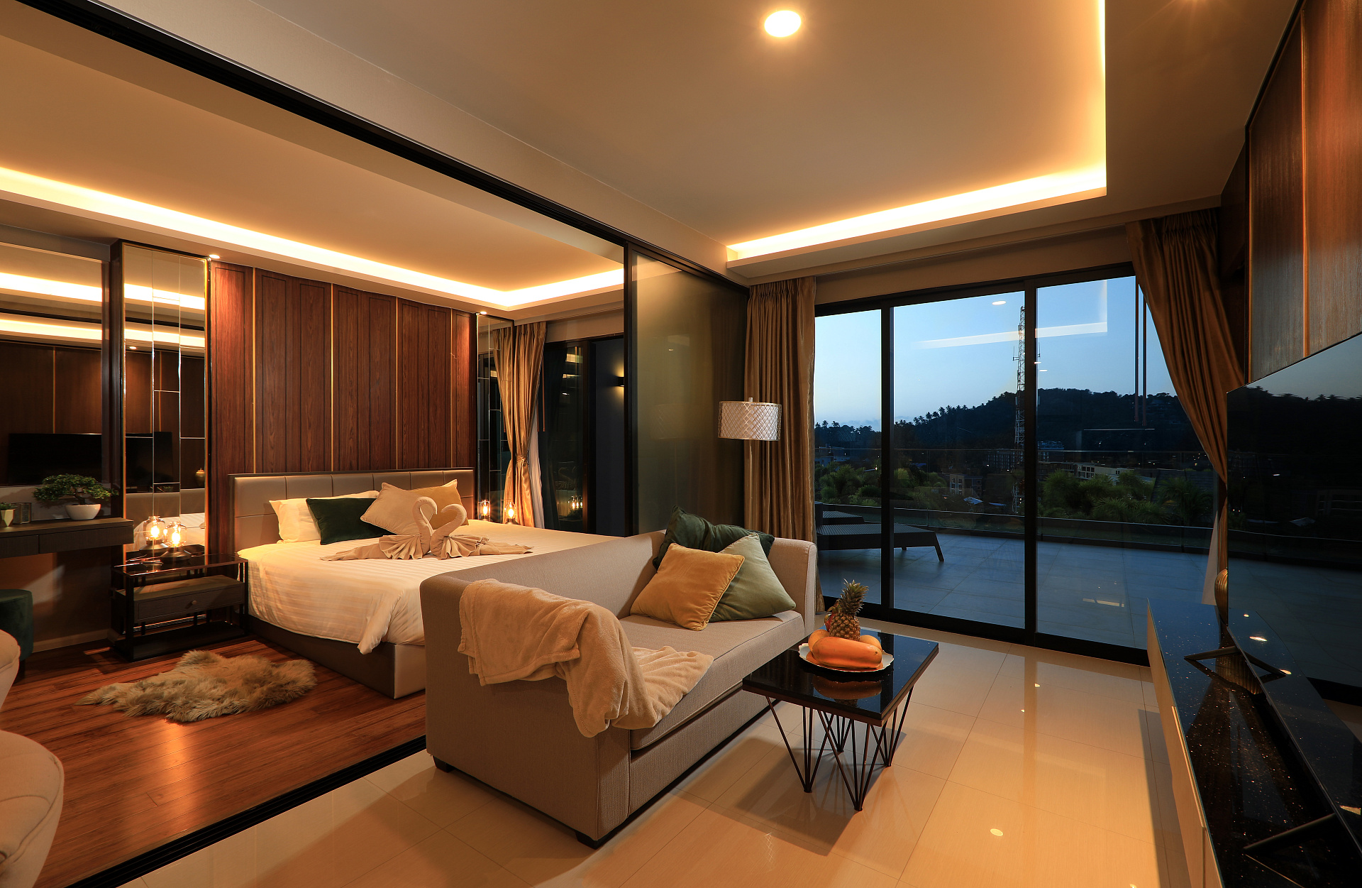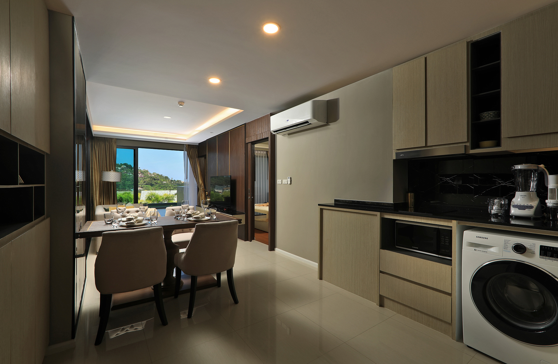 Квартира с 2 спальнями в комплексе The Panora Mida Grande, расположенном в 500 метрах от пляжа Сурин. Благоустроенная территория. Кондоминиум c собственным рестораном, бассейнами, включая детский, водопадами и фонтанами, различными зонами отдыха, библиотекой, детским клубом, фитнесом и спа.