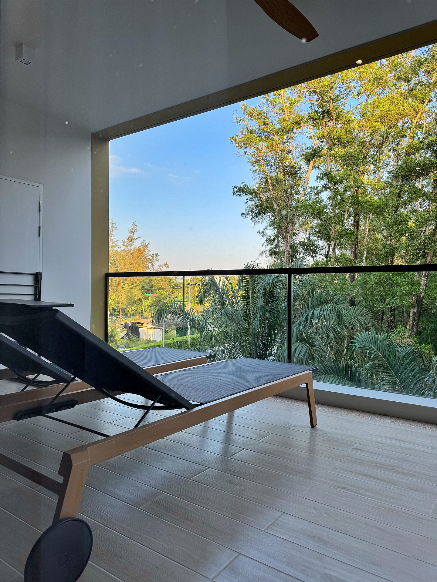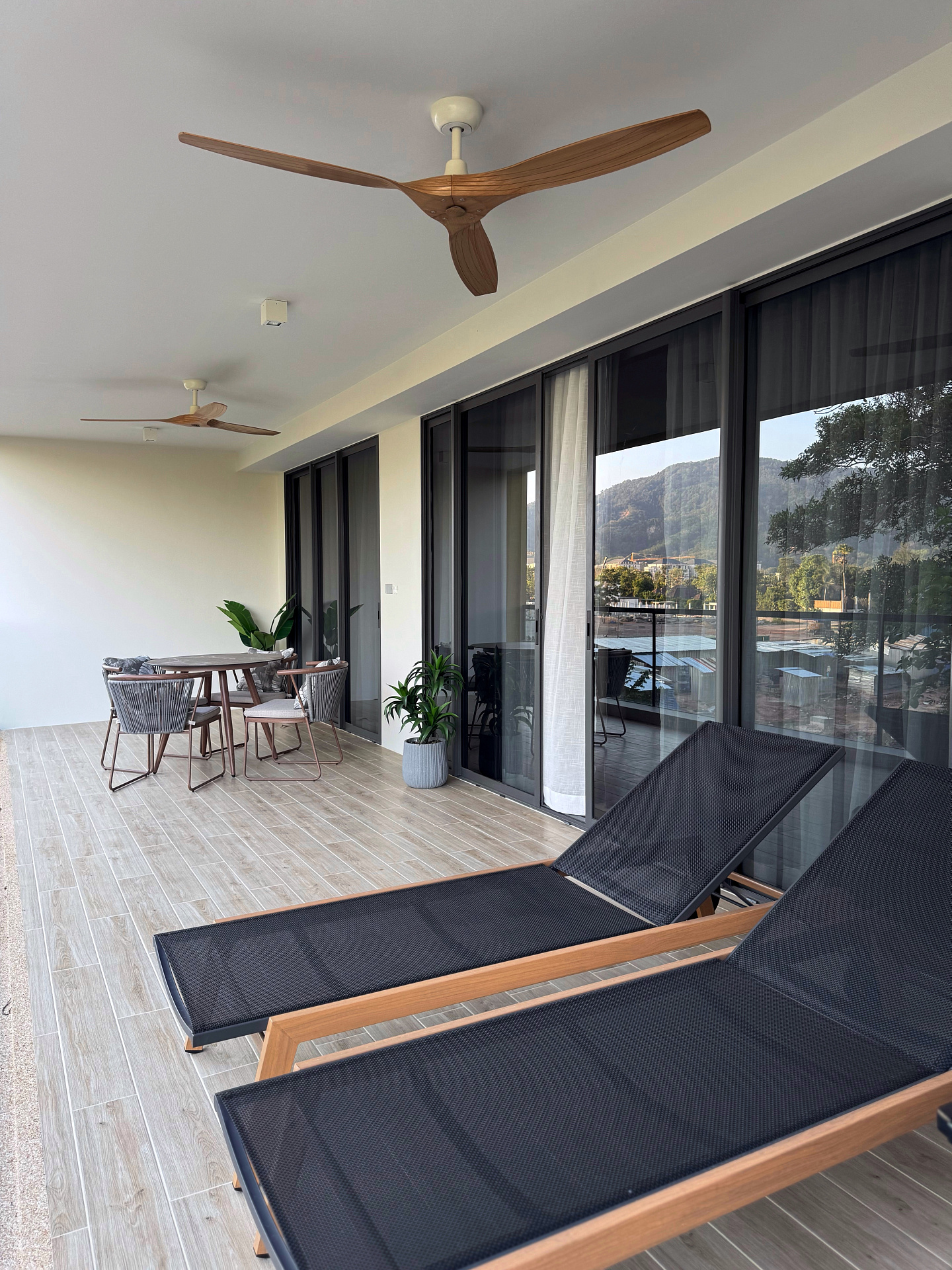 - большая терраса с обеденной зоной и шезлонгами, где можно наслаждаться тропическим климатом и видом на зелень и горы; для вашего