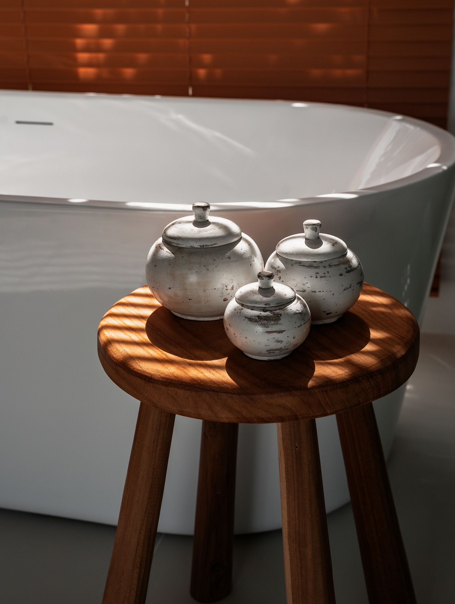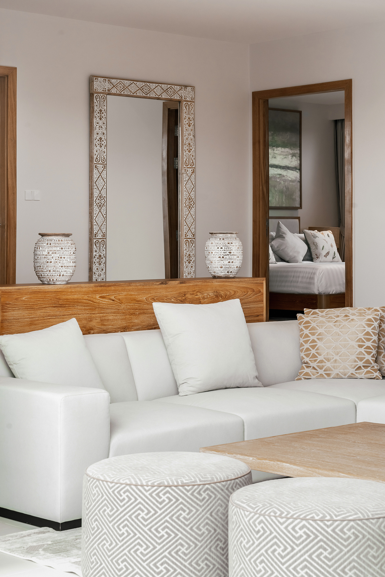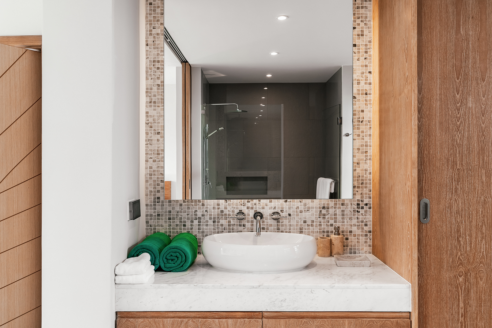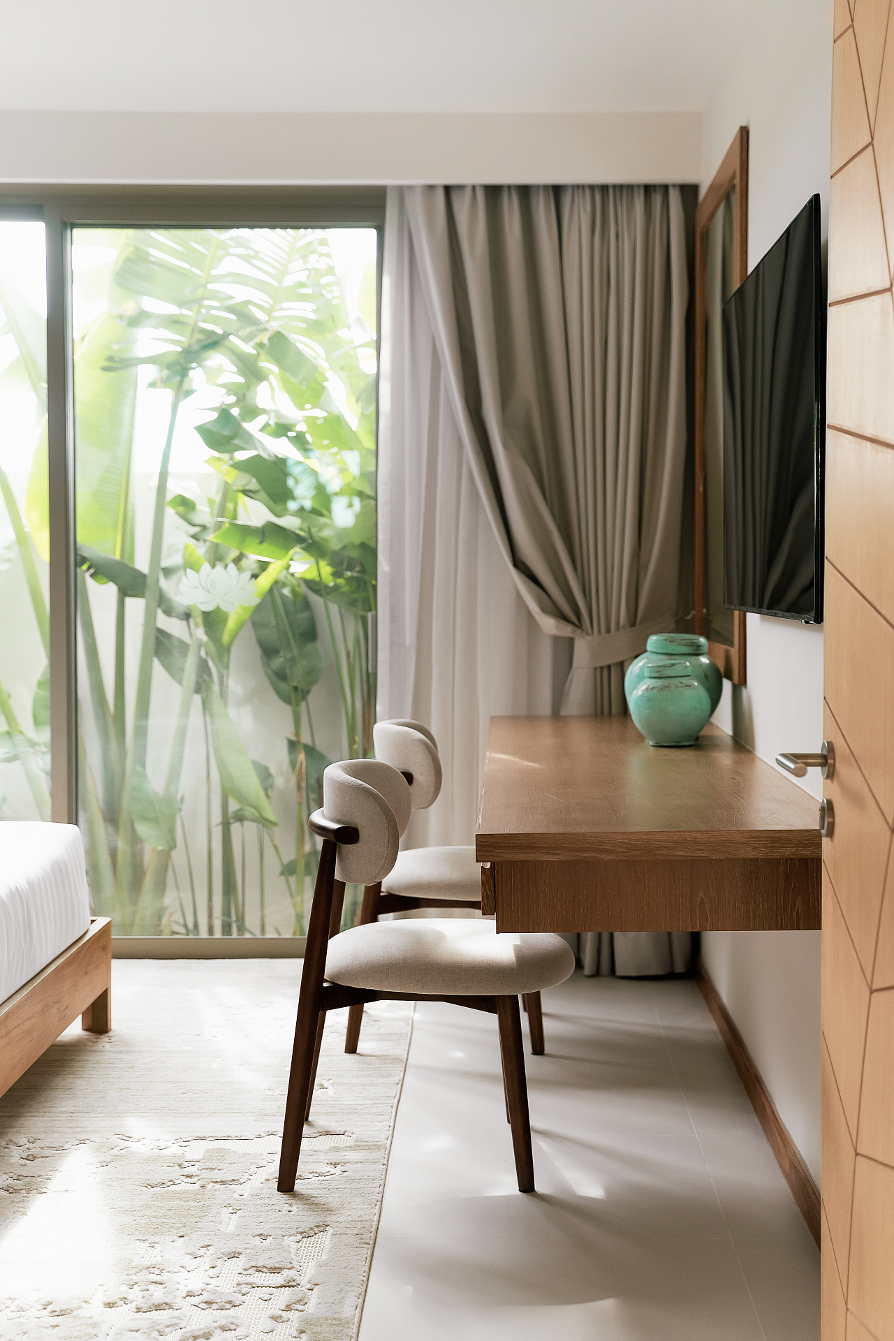 Скатные крыши над основными жилыми помещениями подчеркивают тропический образ жизни. Дизайн виллы выполнен в светлых тонах. Панорамные окна в пол открывают восхитительный вид на бассейн с бирюзовой балийской плиткой.