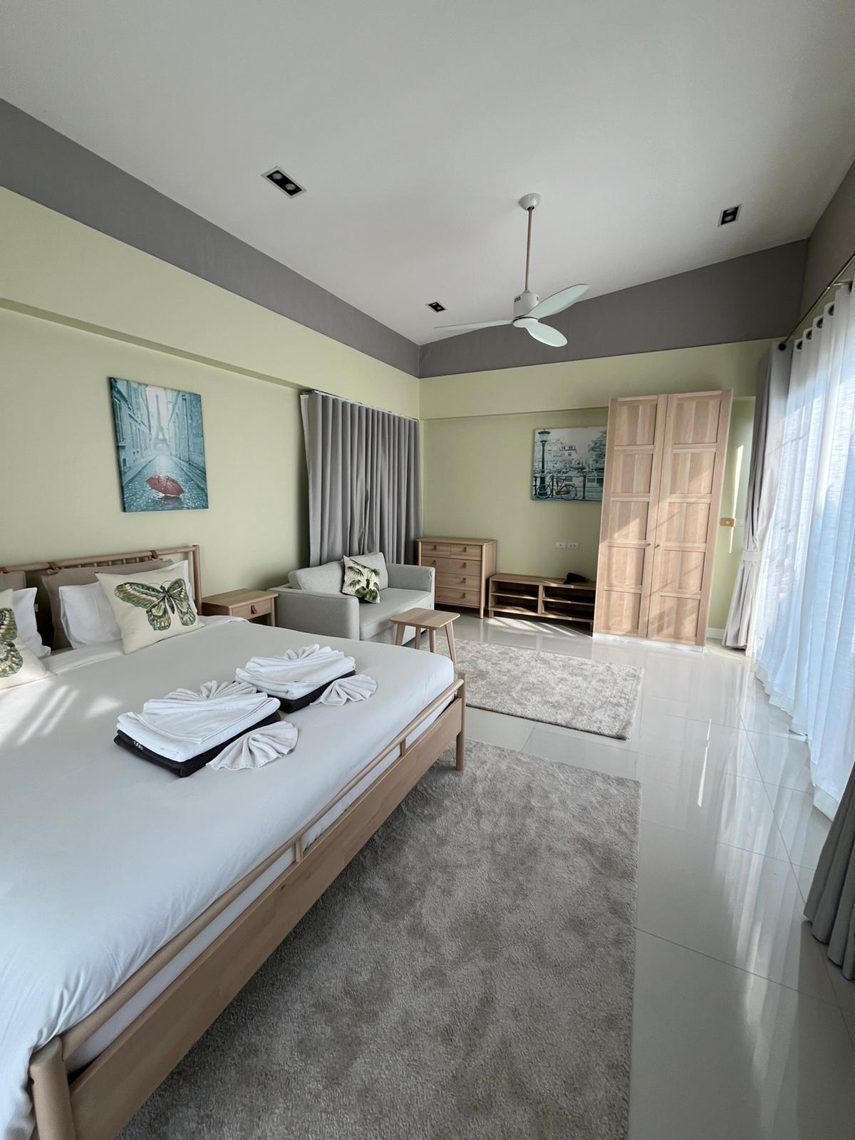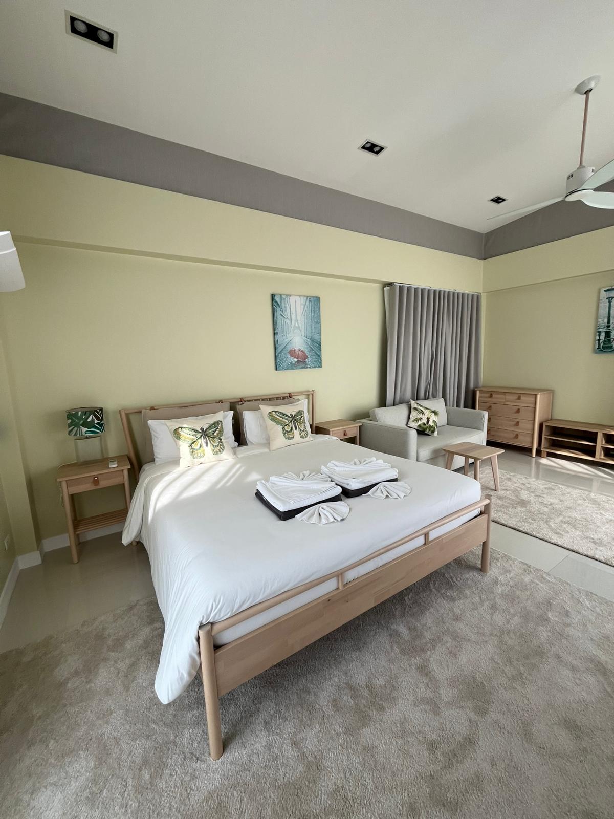 Просторная гостиная с панорамными окнами, полностью оборудованная кухня, 5 уютных спальни с кондиционерами. На крыше – терраса с бассейном и шезлонгами . Закрытый комплекс с охраной, рядом магазины, кафе и пляж. Отличный вариант для семейного отдыха или компании друзей.