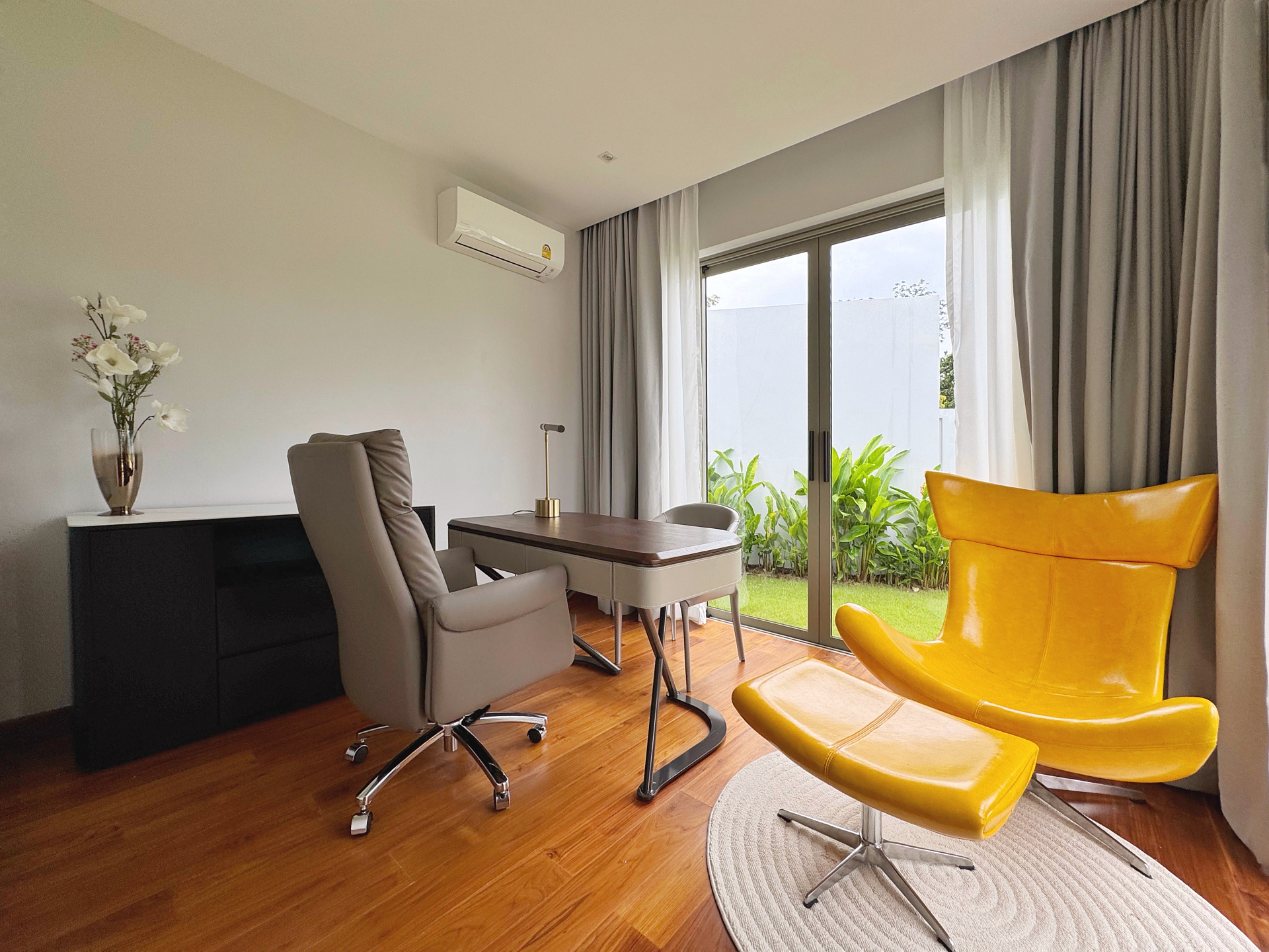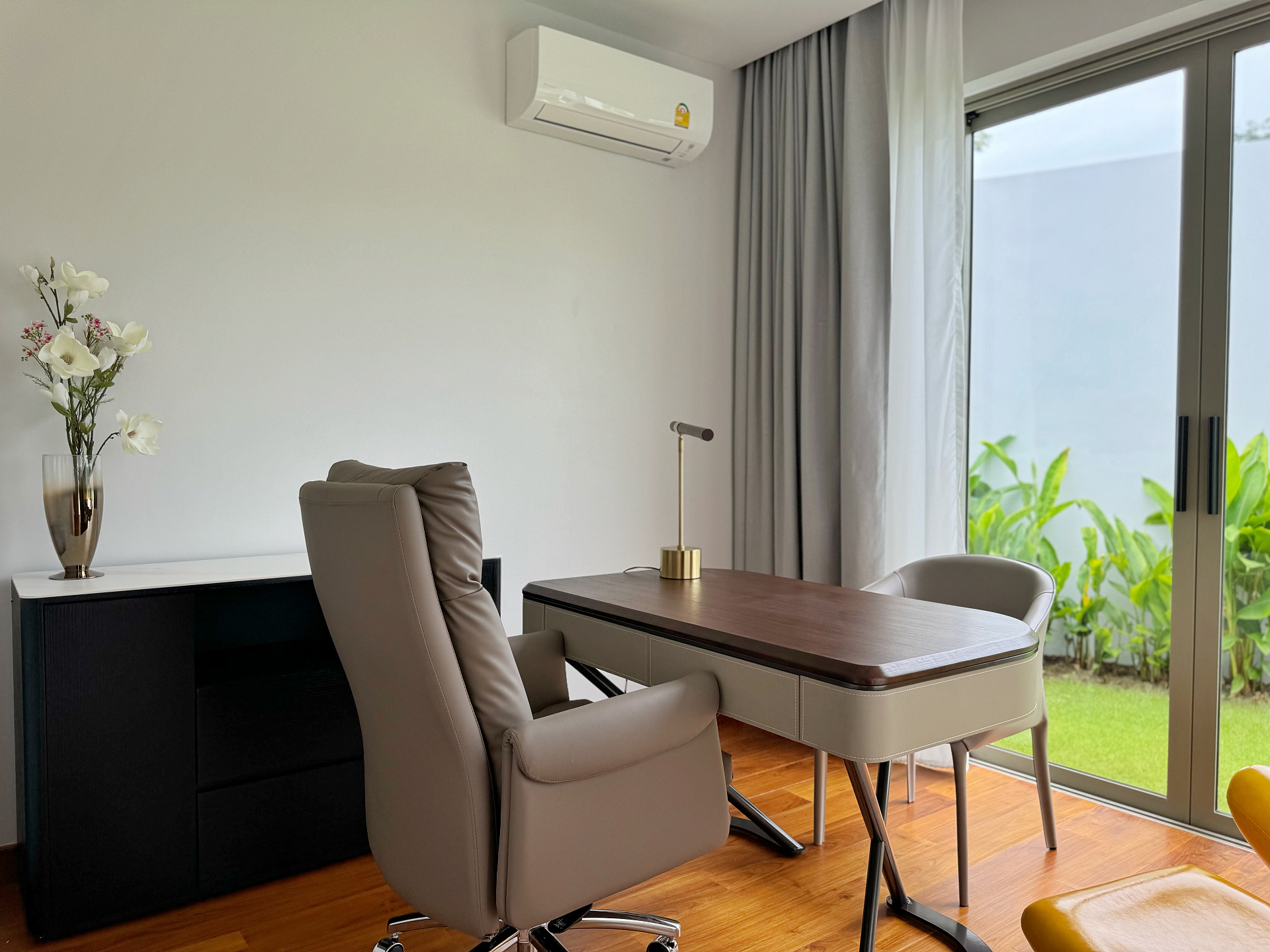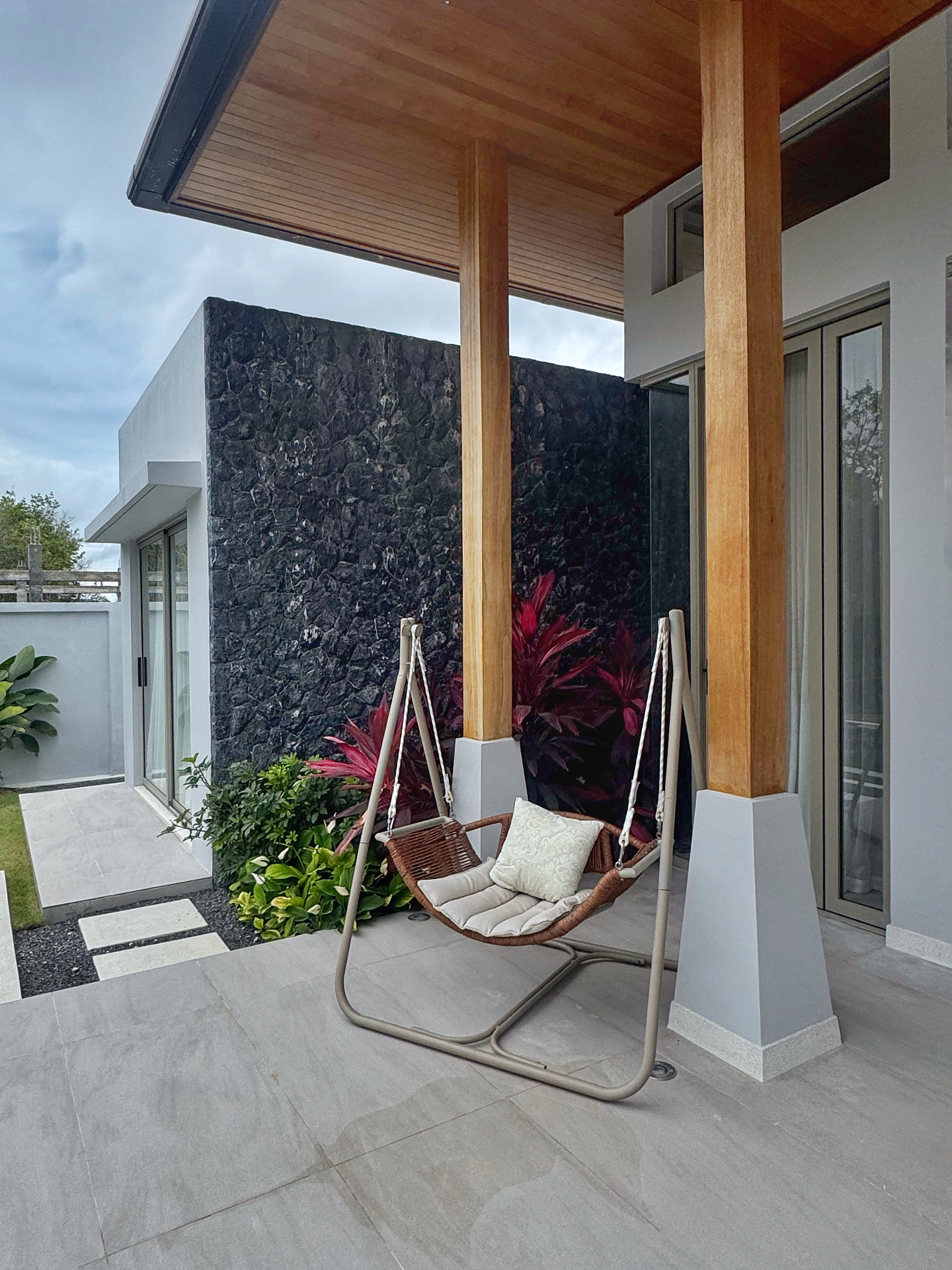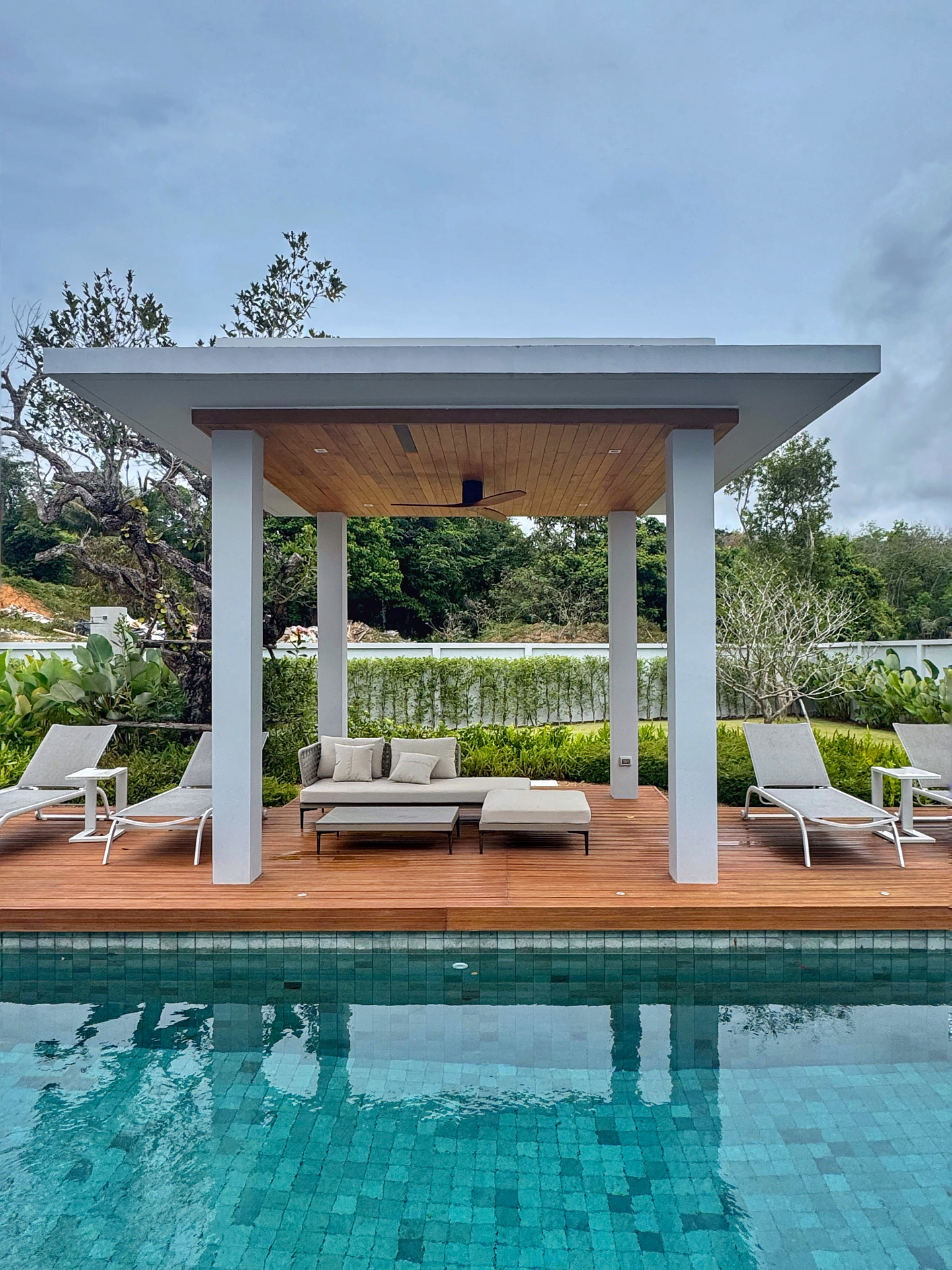 Главное пространство виллы - это просторная гостиная с кухней и обеденной зоной, настоящее сердце дома. Cводчатый потолок из тикового дерева придает элегантный и аутентичный вид, а раздвижные стеклянные двери добавляют света и сияния. В этой же зоне расположены гостевой санузел и постирочная комната.
