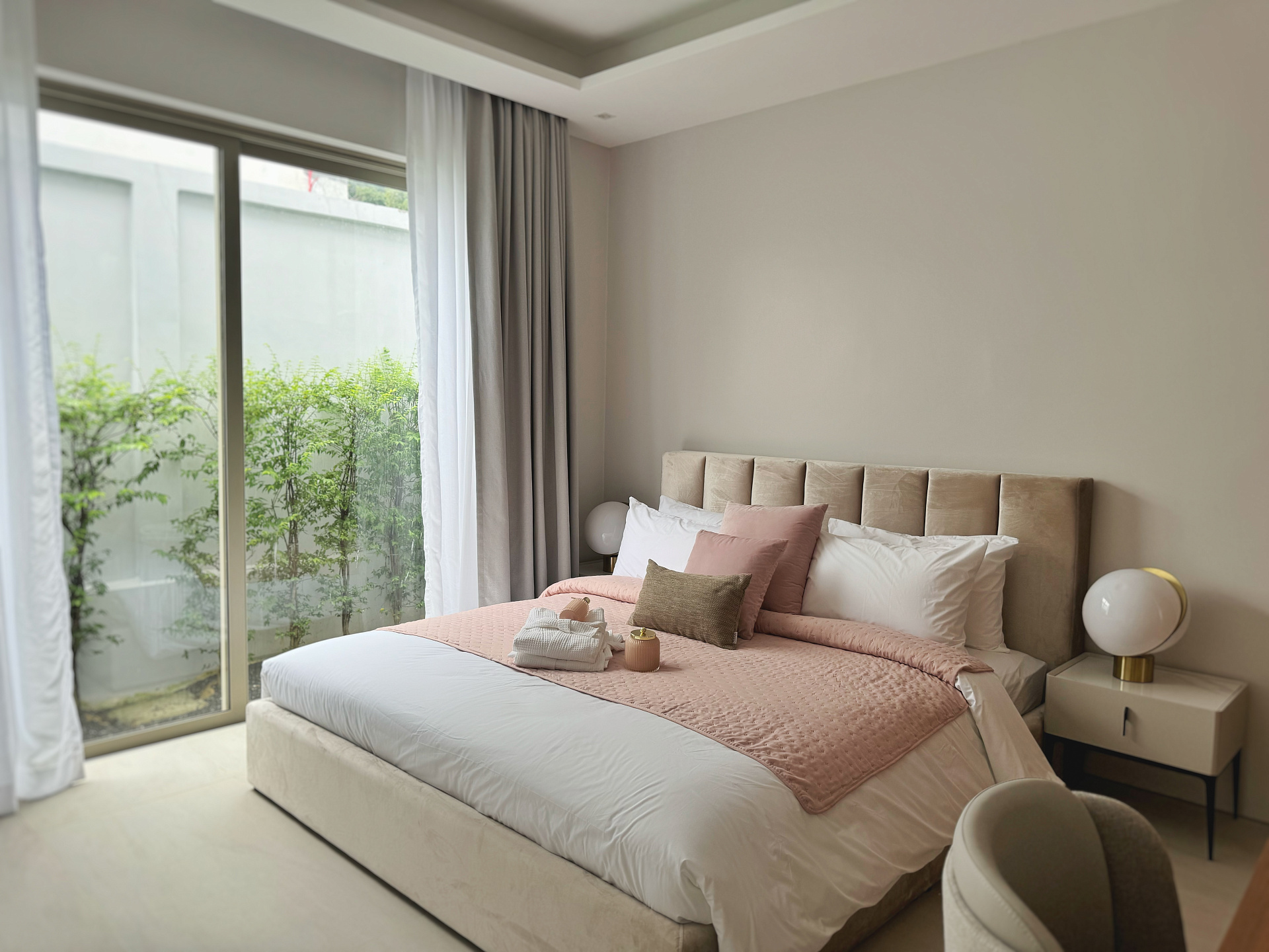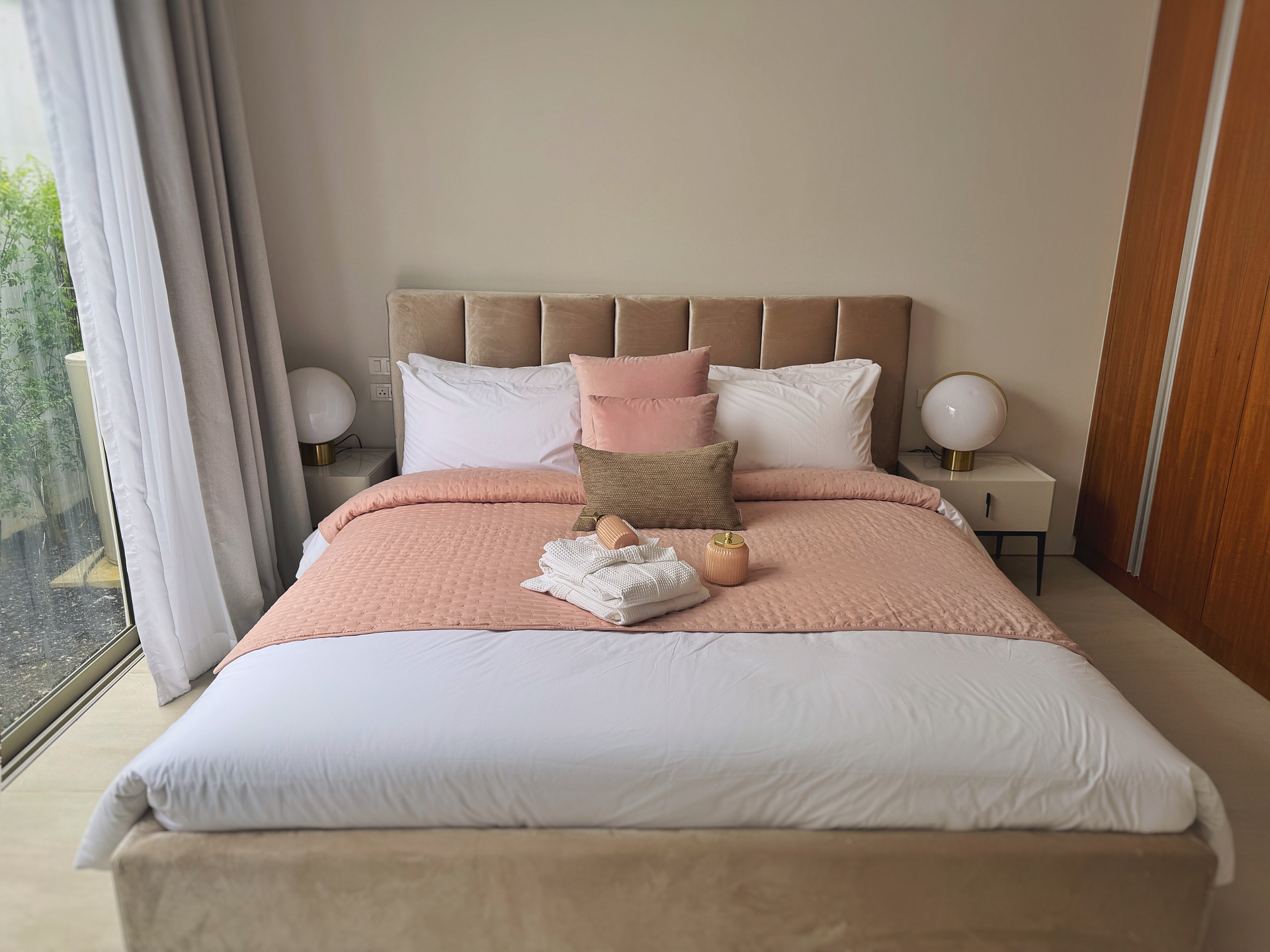 Спальные зоны виллы оснащены King size кроватями и продуманы для максимального комфорта: