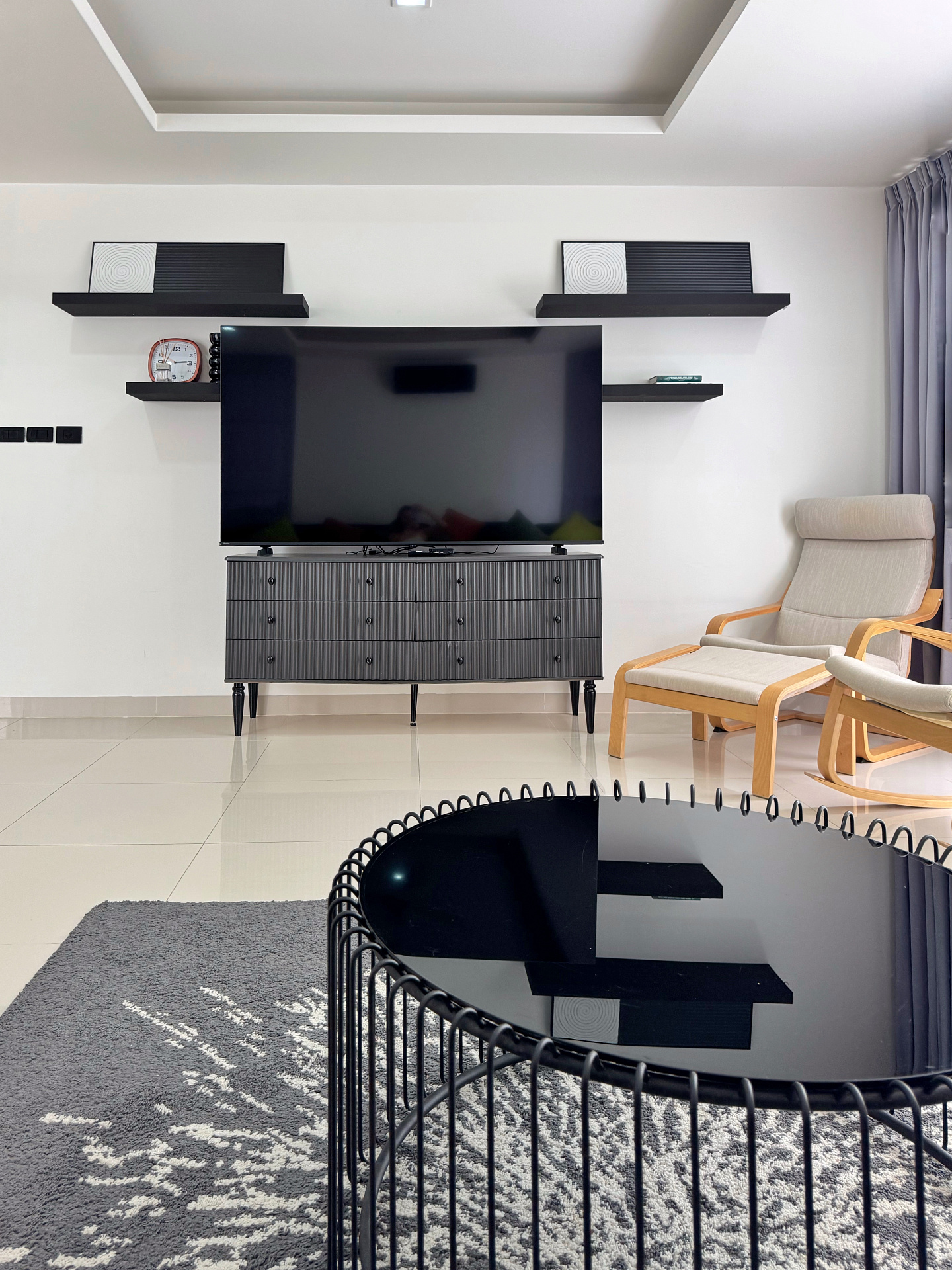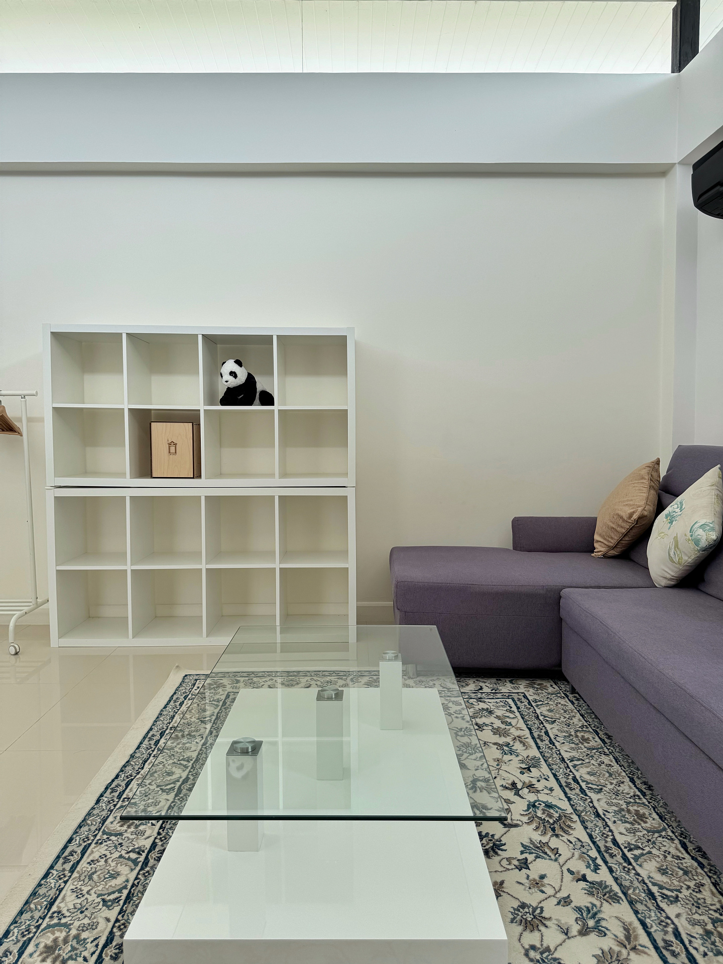 1 этаж: просторная гостиная с мягкой мебелью, полностью оборудованная кухня, обеденная зона и гостевая спальня