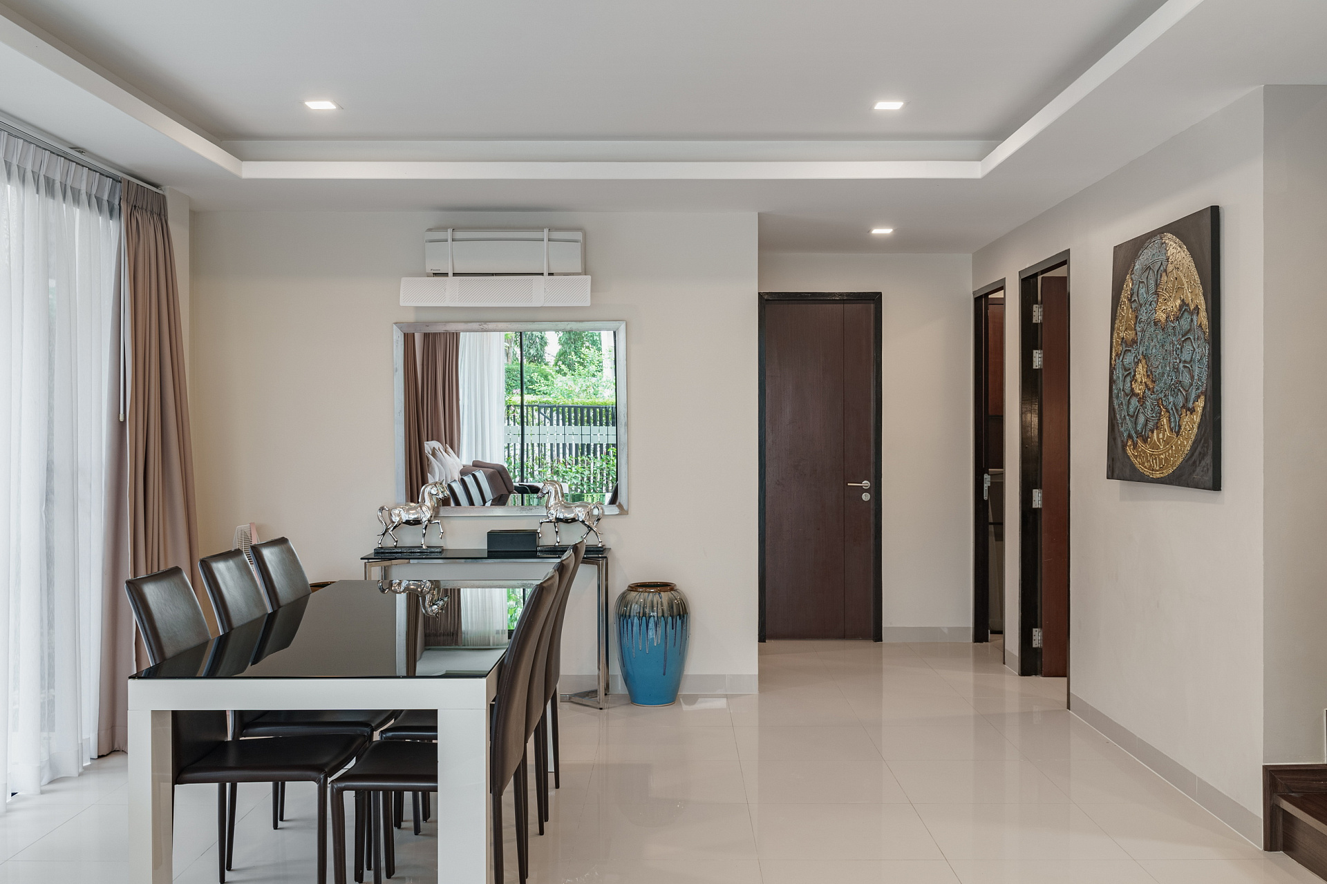 Просторная гостиная с панорамными окнами, полностью оборудованная кухня, 5 уютных спальни с кондиционерами. На крыше – терраса с бассейном и шезлонгами . Закрытый комплекс с охраной, рядом магазины, кафе и пляж. Отличный вариант для семейного отдыха или компании друзей.